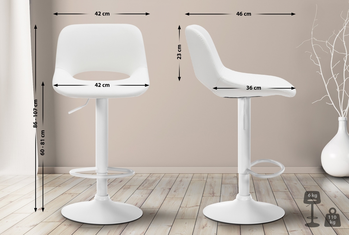 Integrované opěrky nohou nabízejí další pohodlí při sezení. A konečně, barové židle jsou vybaveny chrániči podlahy, které chrání i citlivé povrchy.