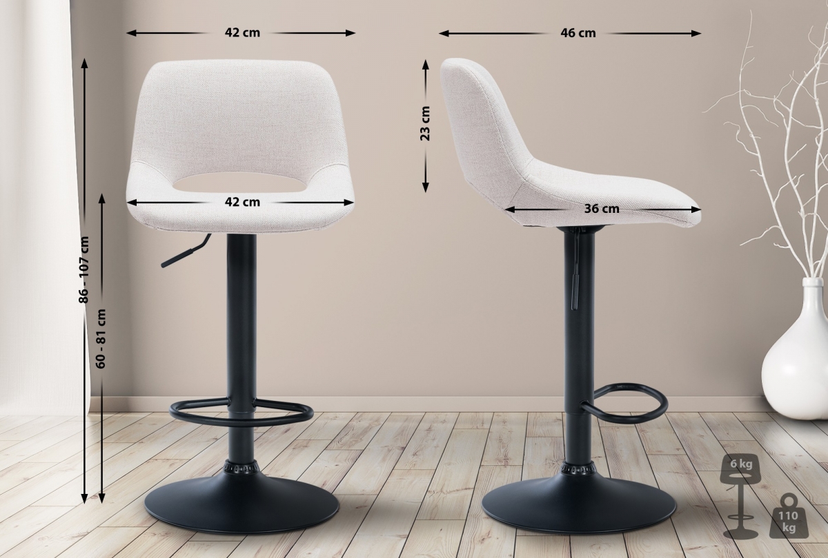 Integrované opěrky nohou nabízejí další pohodlí při sezení. A konečně, barové židle jsou vybaveny chrániči podlahy, které chrání i citlivé povrchy.
