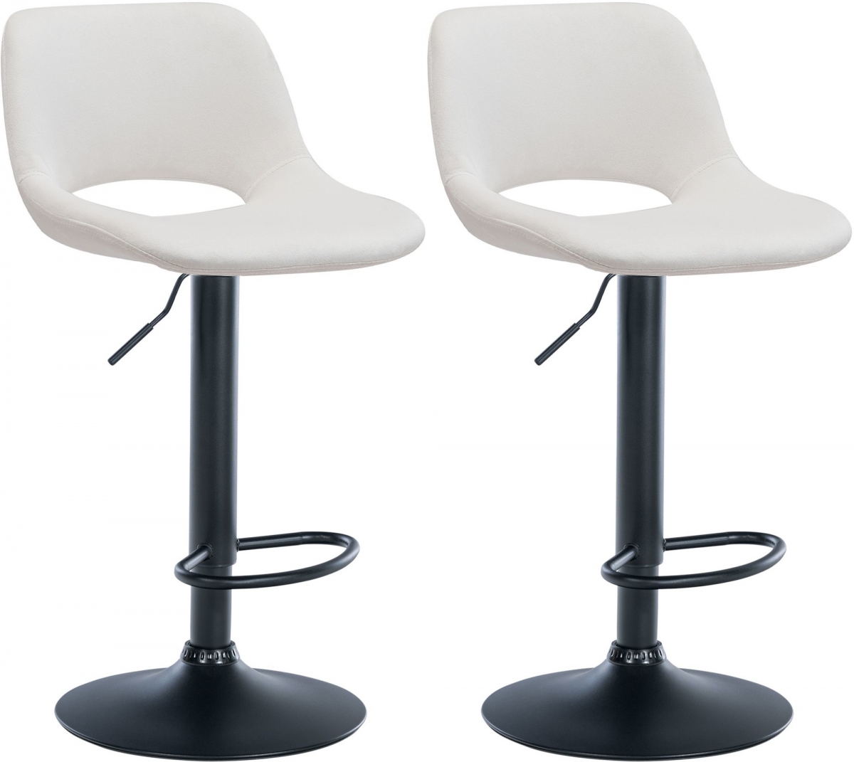 Sada 2 moderních barových židlí Camden s potahem z umělého sametu. Pohodlné polstrování, výškově nastavitelné, otočné o 360°, s opěrkami nohou a chrániči podlahy. Ideální do domácího baru nebo kuchyně.