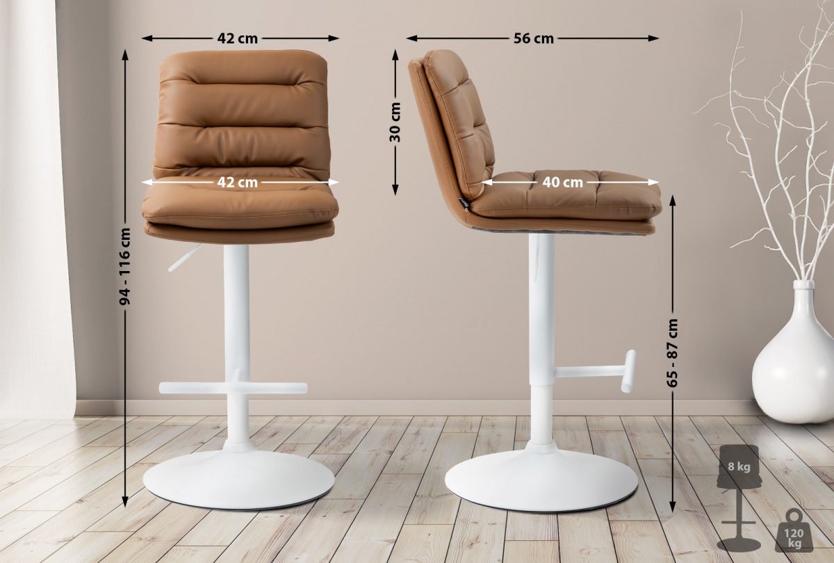 2x Barová židle Damar - koženka, bílý rám - světle hnědá