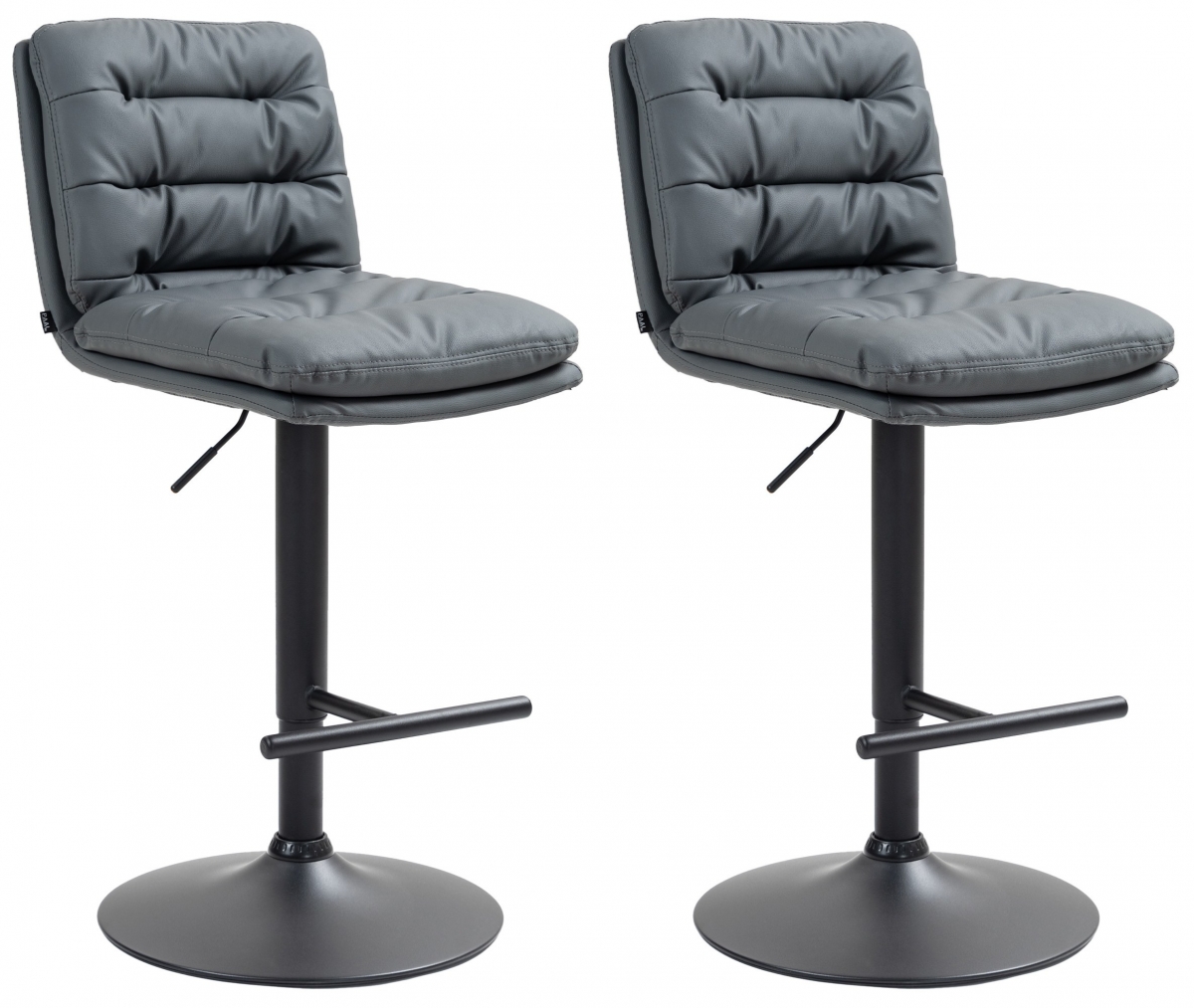 Sada 2 barových židlí Damar s moderním designem a vysokým komfortem. Výškově nastavitelné, otočné o 360°, s nosností 120 kg. Silně čalouněné sedátko, opěrka nohou a elegantní koženkový potah pro maximální pohodlí a styl.