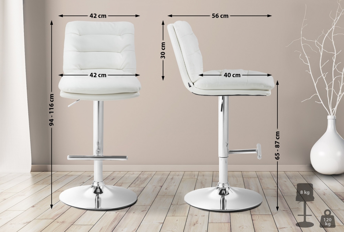 2x Barová židle Damar - koženka, chrom rám - bílá