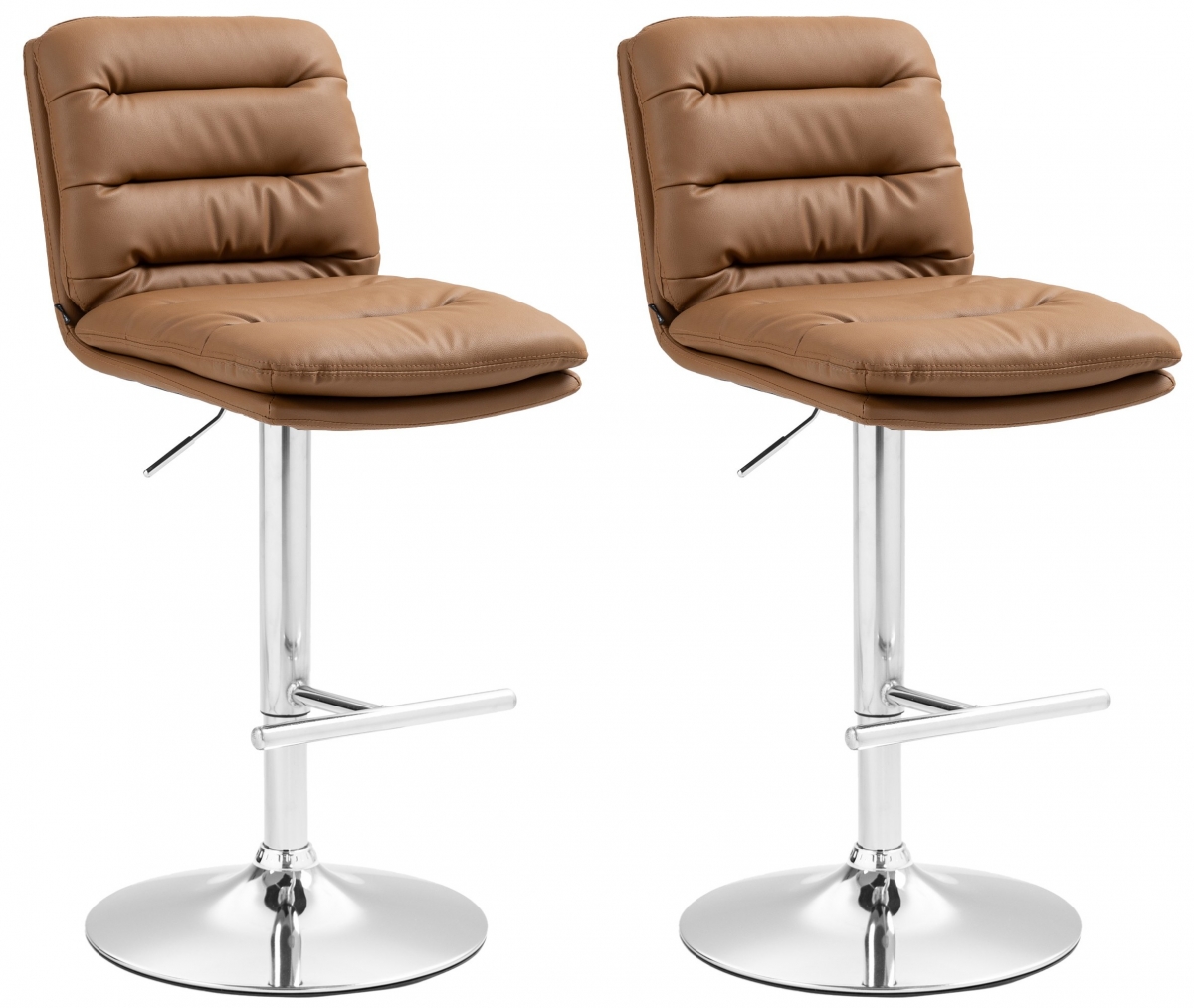 2x Barová židle Damar - koženka, chrom rám - světle hnědá