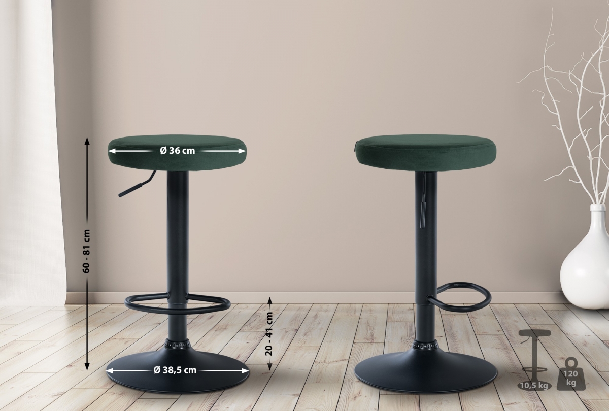 Sada 2 barových židlí Ponte - pohodlné a stylové sezení do kuchyně či baru. Otočné, výškově nastavitelné židle s opěrkou nohou nabízí komfort i po hodinách sezení. Robustní kovový rám a kvalitní koženka nebo samet zaručují stabilitu a dlouhou životnost.