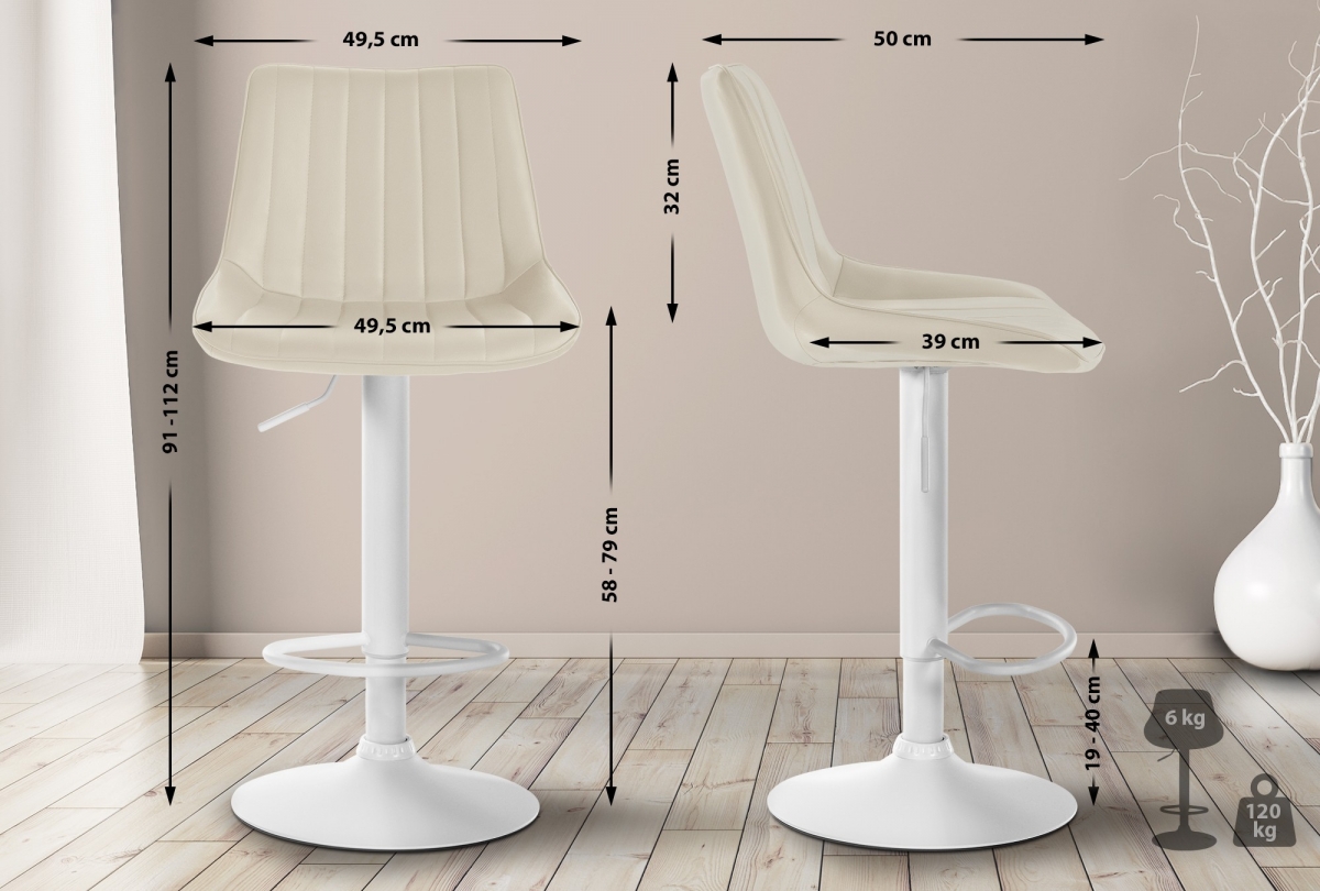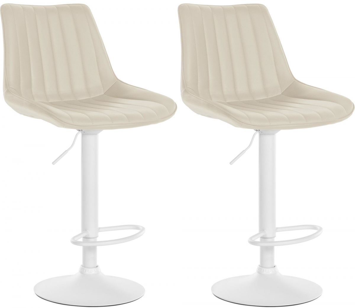 Sada 2 moderních barových židlí Toni s nastavitelnou výškou a otočným sedátkem. Pohodlné polstrování, stabilní kovová konstrukce a snadná údržba pro maximální komfort a dlouhou životnost. Ideální pro domácí bar nebo kuchyňský pult.