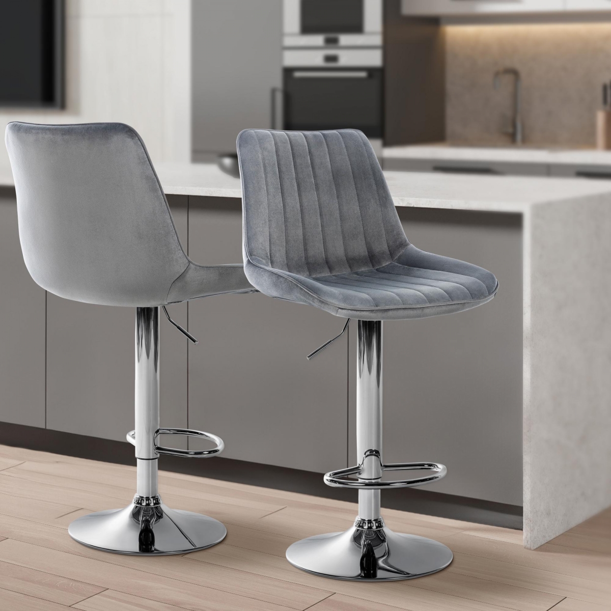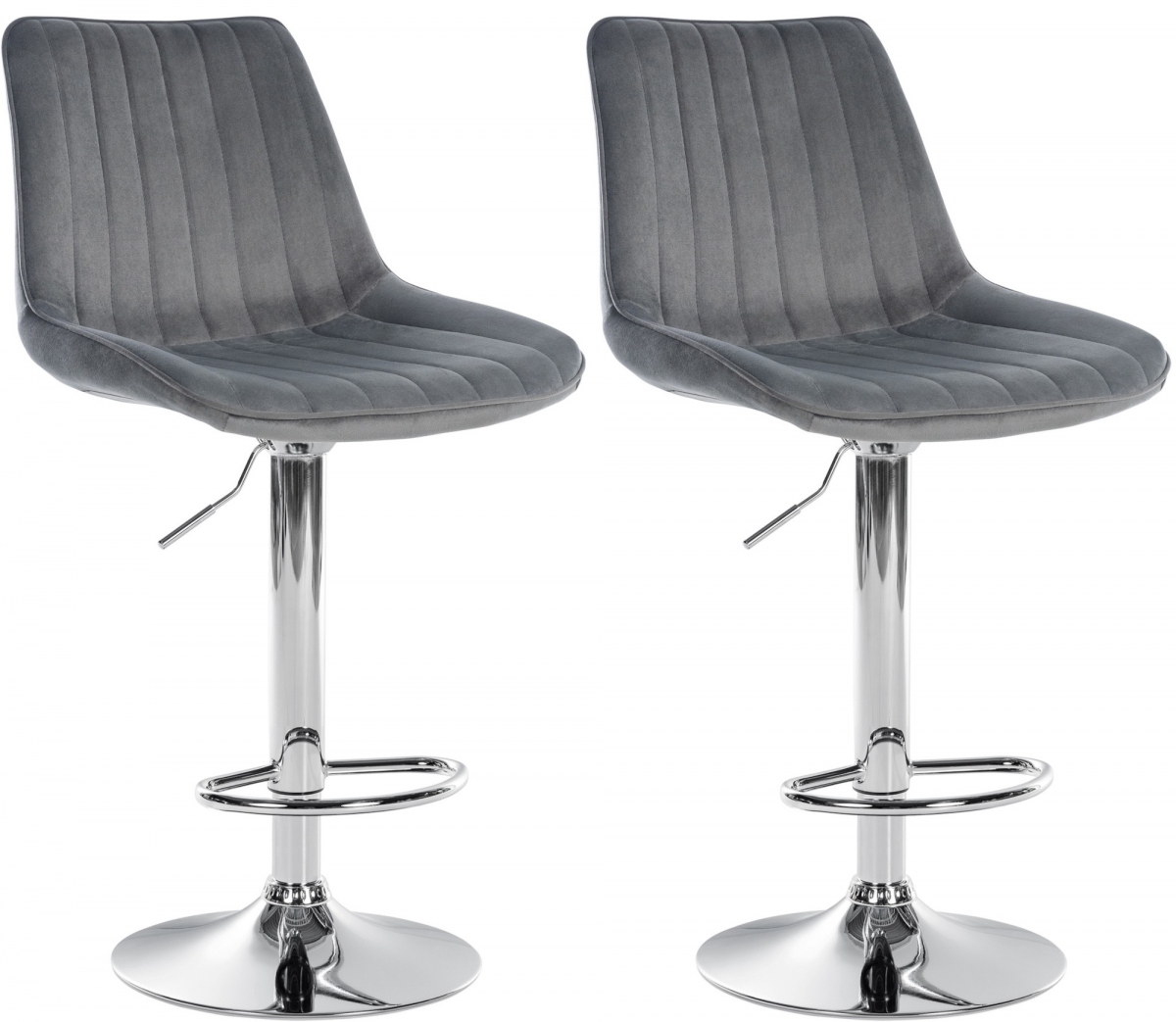 Sada 2 moderních barových židlí Toni s nastavitelnou výškou a otočným sedátkem. Pohodlné polstrování, stabilní kovová konstrukce a snadná údržba pro maximální komfort a dlouhou životnost. Ideální pro domácí bar nebo kuchyňský pult.