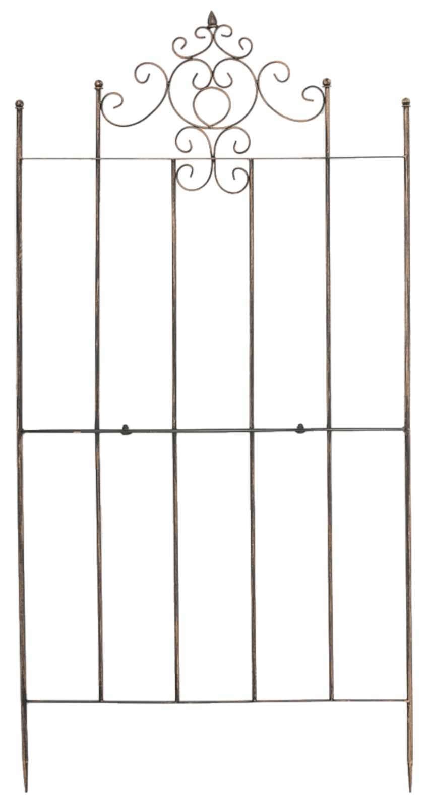 Rustikální mřížka ve stylu venkovského domu s atraktivním designem a dekoracemi. Volně stojící kovová konstrukce o výšce 170 cm a šířce 85,5 cm se snadno montuje a dodá vaší zahradě jedinečný venkovský charakter.