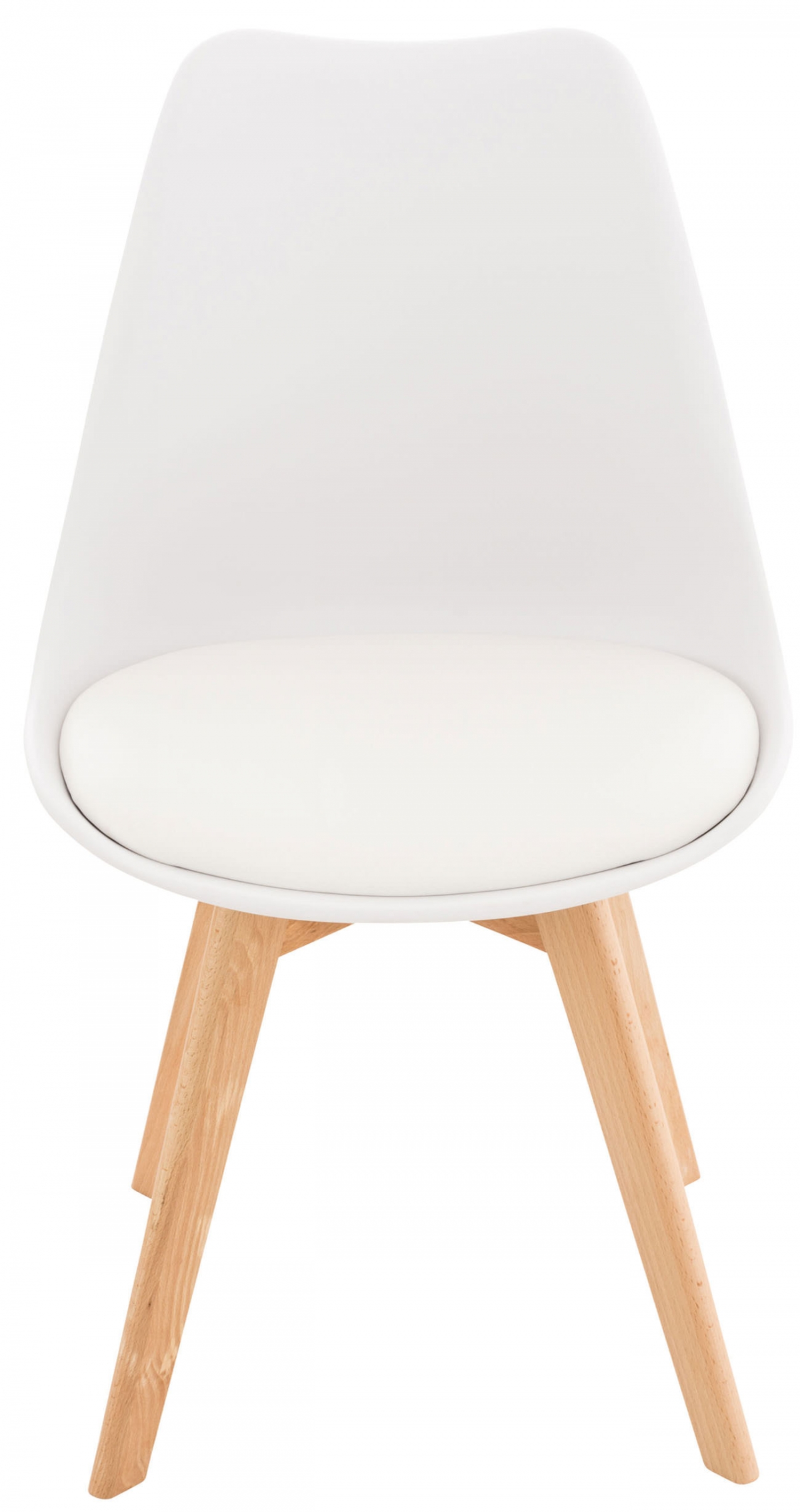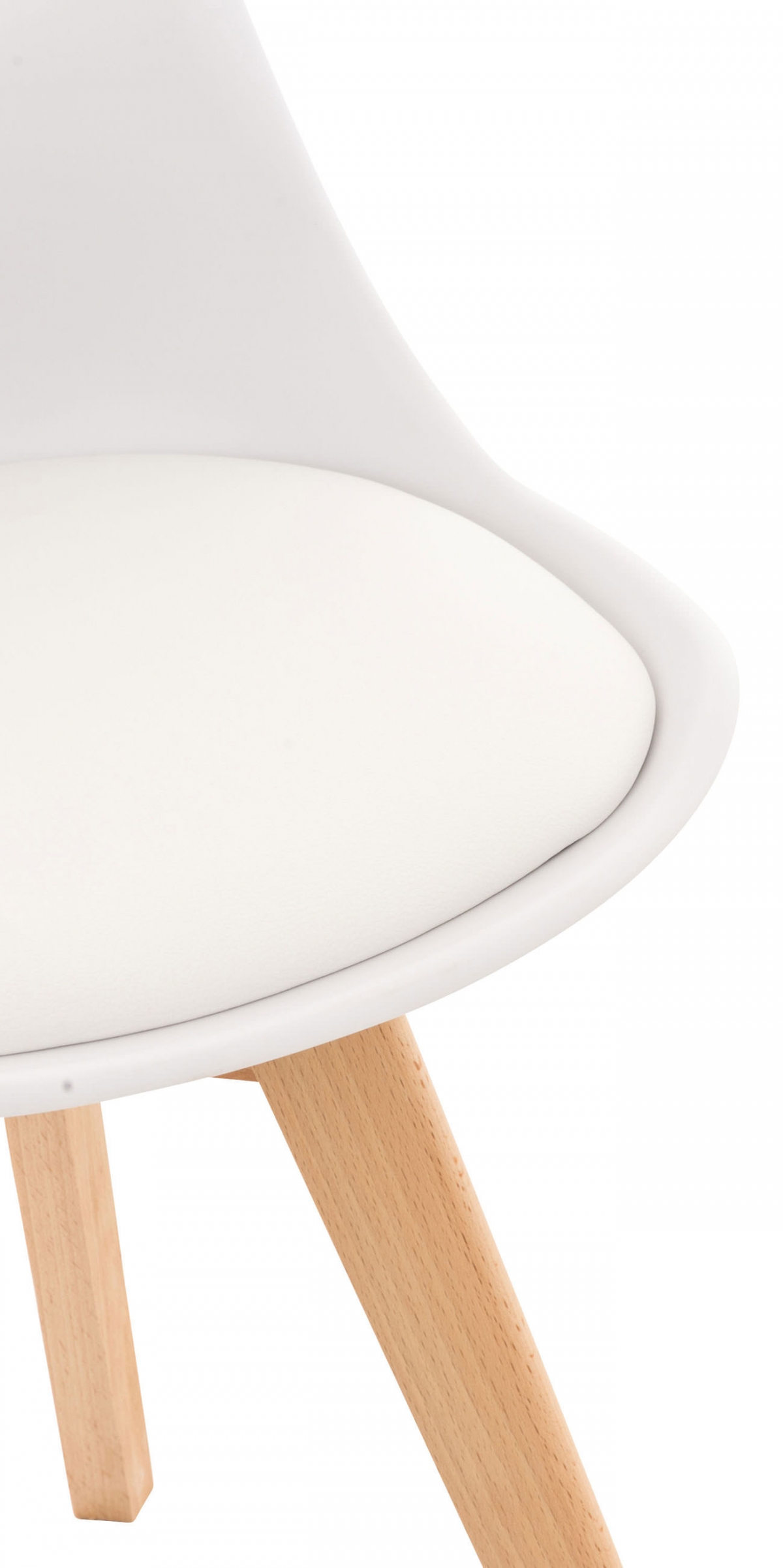 Elegantní židle s křivkami kombinuje plastové opěradlo a dřevěné nohy z buku. Pohodlné čalouněné sedátko z koženky a vysoké opěradlo zaručují komfort i při delším sezení. Rozměry: 49x83x50 cm, výška sedu 46 cm.