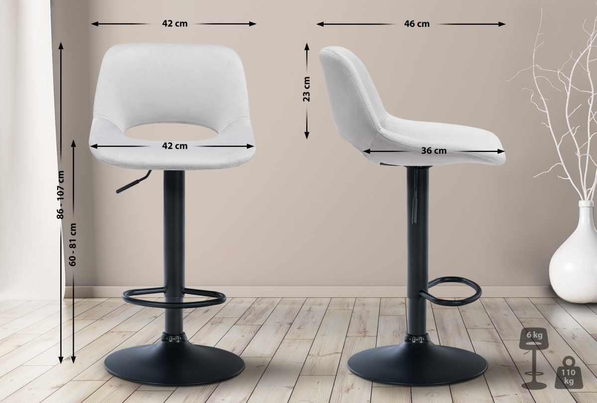 Integrované opěrky nohou nabízejí další pohodlí při sezení. A konečně, barové židle jsou vybaveny chrániči podlahy, které chrání i citlivé povrchy.