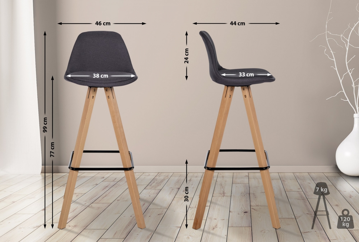 Barová židle Corbin Square - látka, natura rám - tmavě šedá