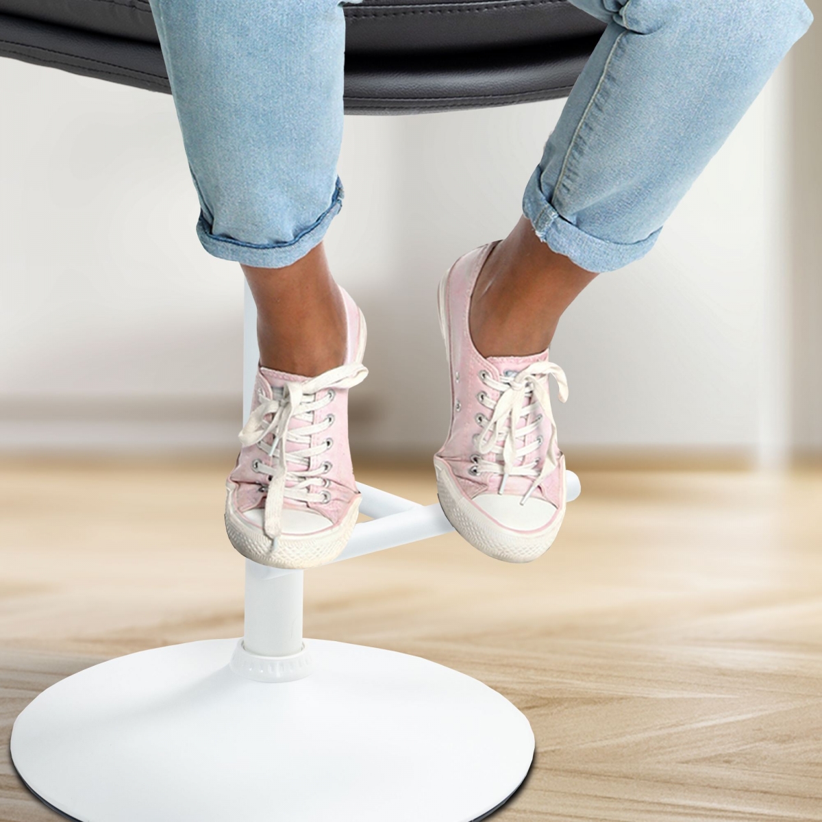 Rám taburetu a módní potah dodávají taburetce elegantní vzhled. Sedák je potažen umělou kůží, která se snadno udržuje. Kovový rám je výškově nastavitelný a funkce otáčení o 360 stupňů zajišťuje dostatek volnosti pohybu.