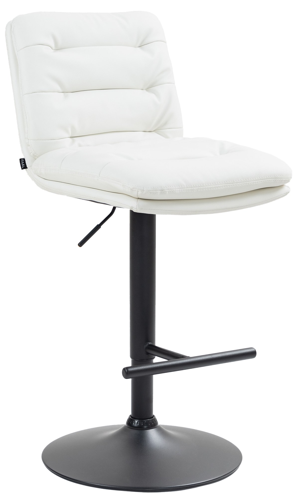 Moderní barová židle Damar s koženkovým potahem nabízí maximální komfort díky polstrovanému sedadlu a opěradlu. Výškově nastavitelná a otočná, s nosností až 120 kg, je ideální do kuchyně nebo baru.