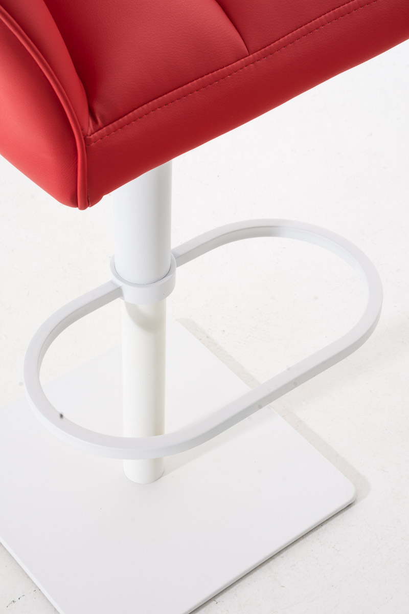 Trendy barová židle s bílým rámem a čalouněným sedákem. Nabízí moderní design, pohodlí a praktické funkce jako otáčení, nastavení výšky a opěrky nohou. Ideální volba pro stylový interiér.
