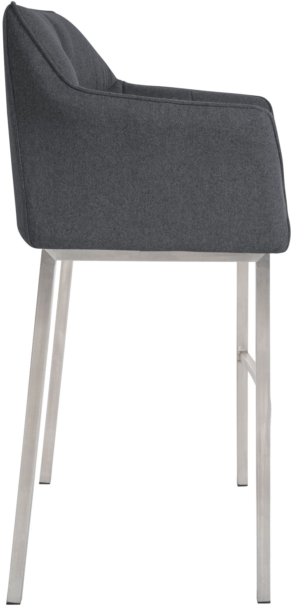 Elegantní barová židle Damaso spojuje pohodlí a styl. S polstrovaným potahem, opěrkou nohou a rámem z nerezavějící oceli je ideální do barů či kuchyní. Nosnost 115 kg, výška 110 cm, dostupná v různých barvách.