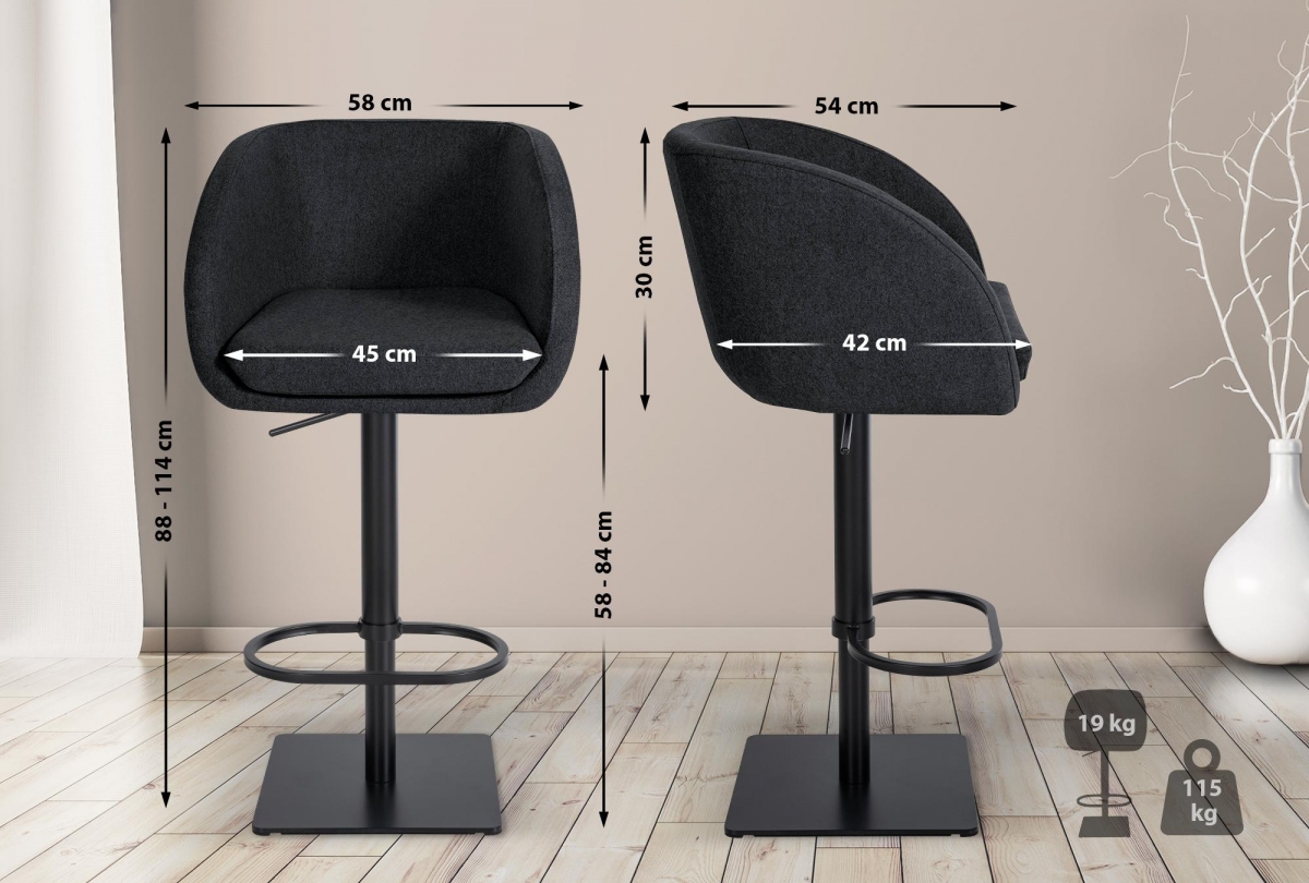 Díky svým vysoce kvalitním materiálům, jako je plstěný potah, tato barová židle nabízí nejen pohodlné sezení, ale dodává židli i moderní nádech. Tato kuchyňská židle je vybavena plynulým otočným mechanismem o 360° a jednoduchým pákovým ovládáním pro plynulé nastavení výšky a nabízí pohodlí a přizpůsobivost.