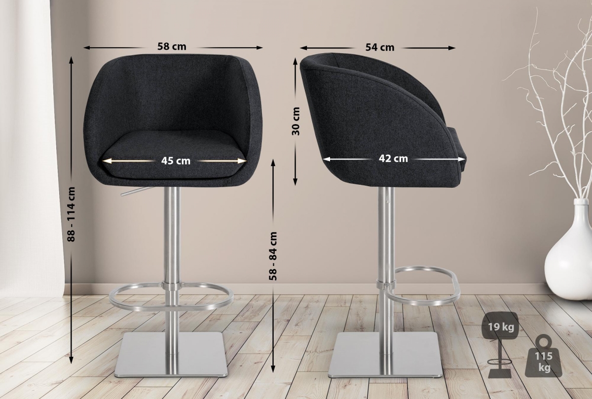 Díky svým vysoce kvalitním materiálům, jako je plstěný potah, tato barová židle nabízí nejen pohodlné sezení, ale dodává židli i moderní nádech. Tato kuchyňská židle je vybavena plynulým otočným mechanismem o 360° a jednoduchým pákovým ovládáním pro plynulé nastavení výšky a nabízí pohodlí a přizpůsobivost.