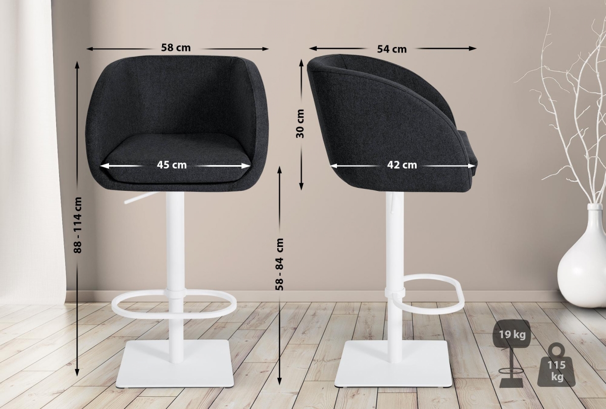 Díky svým vysoce kvalitním materiálům, jako je plstěný potah, tato barová židle nabízí nejen pohodlné sezení, ale dodává židli i moderní nádech. Tato kuchyňská židle je vybavena plynulým otočným mechanismem o 360° a jednoduchým pákovým ovládáním pro plynulé nastavení výšky a nabízí pohodlí a přizpůsobivost.