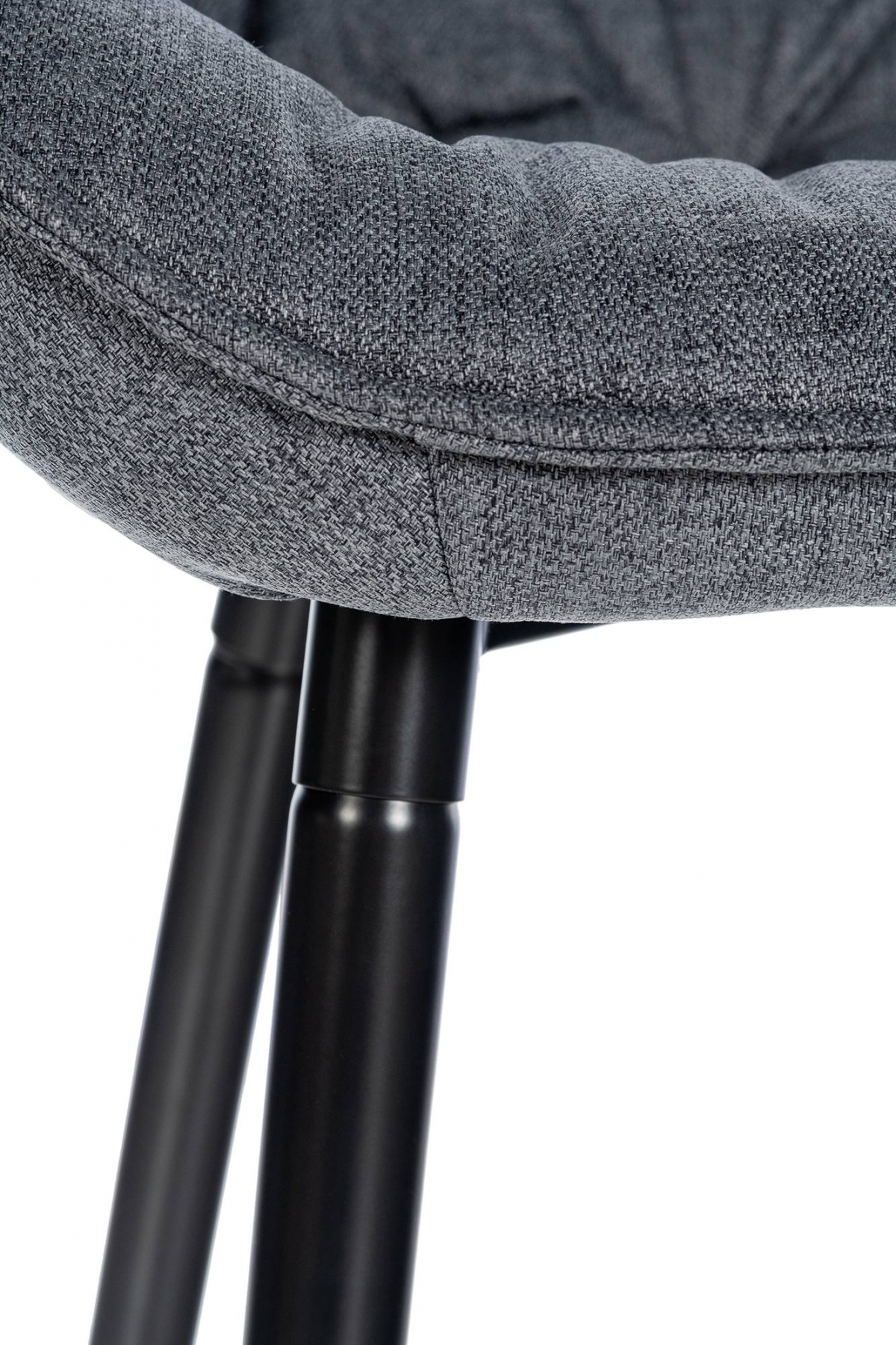 Za svůj elegantní vzhled židle vděčí kombinaci matného černého kovového rámu a příjemného látkového potahu.