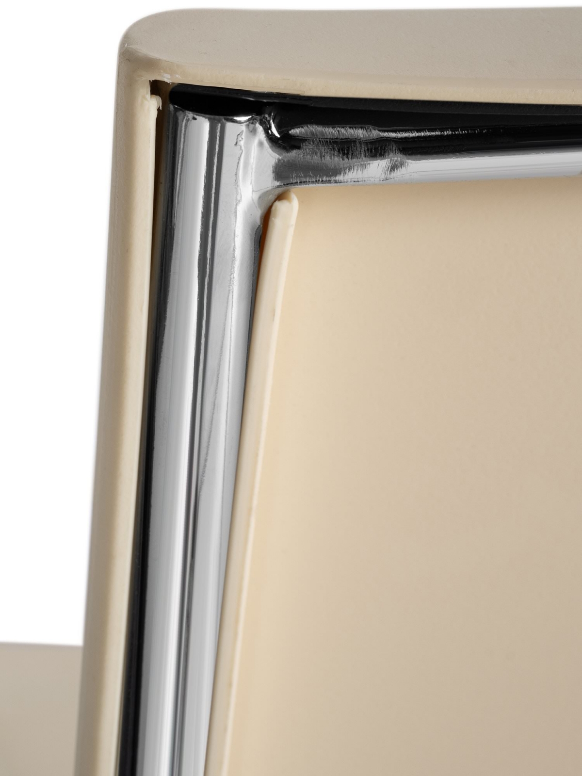 Barová židle má následující charakteristiky: Moderní design, jednoduchost a zároveň exkluzivita, robustní chromovaná základna, vysoká funkčnost. Barová židle je stohovatelná a jednotlivé prvky, jako jsou sedadla a opěradla jsou zaměnitelné, tvrdý plast sedáku je velmi odolný.