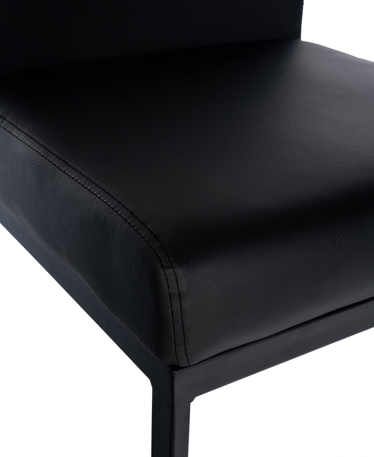Jeho rovný konzolový rám z práškově lakovaného kovu upoutá pozornost a mírné houpání sedáku je vnímáno jako velmi příjemné. Integrovaná příčná vzpěra slouží jako pohodlná opěrka nohou, zatímco opěradlo na sedáku podpírá spodní část zad. Sedák a opěradlo jsou bohatě polstrované a potažené potahem ze syntetické kůže se snadnou údržbou, který je odolný.