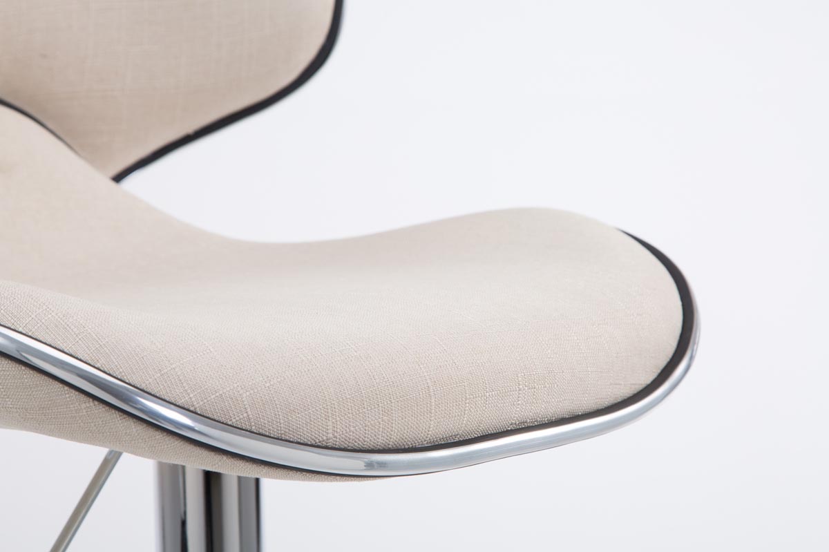 Stylová barová židle Las Vegas 2 s pohodlným látkovým potahem a chromovaným kovovým rámem. Nastavitelná výška, otočné sedátko a opěrka na nohy pro maximální komfort při sezení.