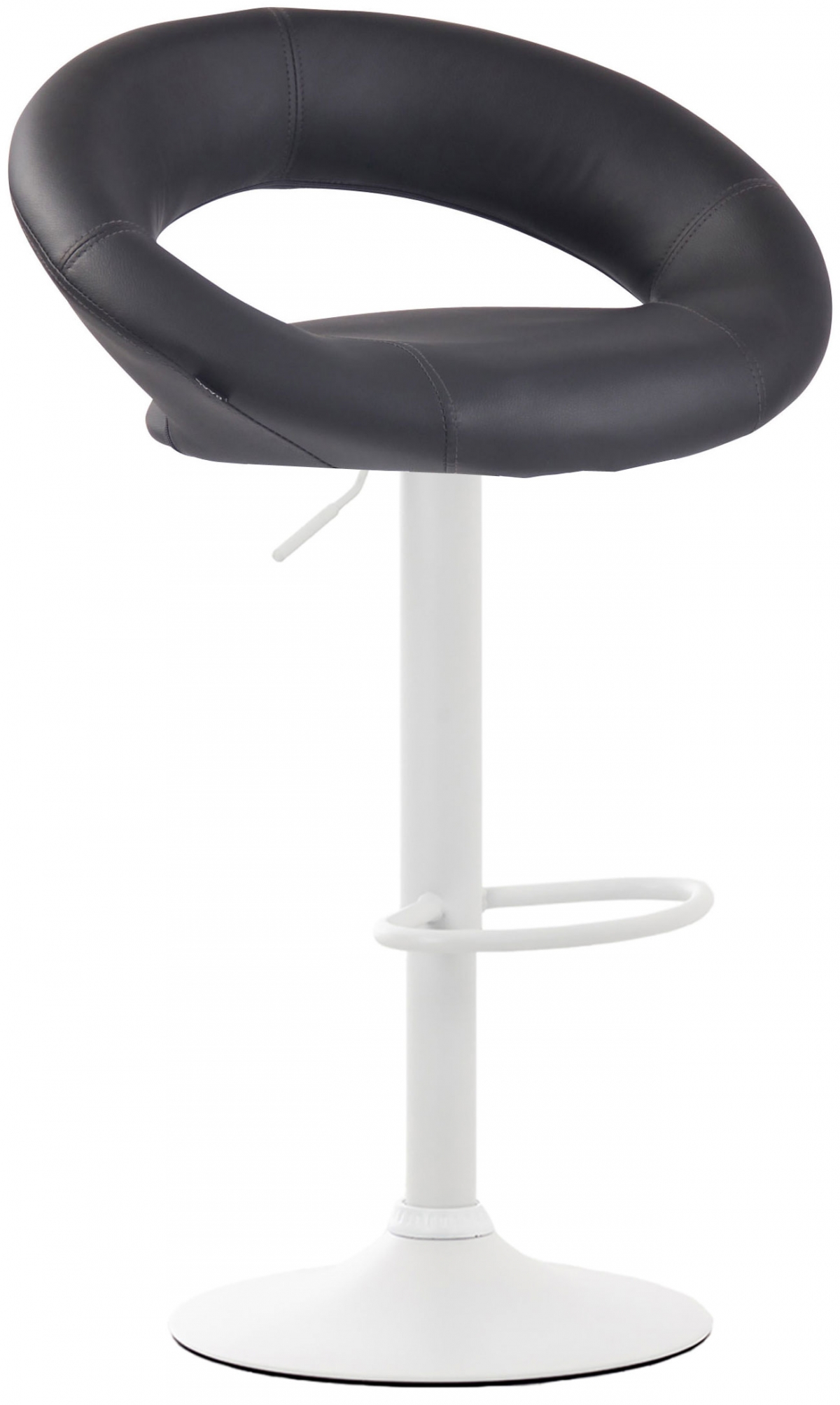 Tato barová židle je pevné a krásné sedadlo pro každodenní použití. Sedák je potažen umělou kůží, která se snadno udržuje, a je zvláště komfortně polstrovaný po celém obvodu opěradla. Stolička je výškově nastavitelná pomocí plynového zvedáku a lze ji otáčet o 360°. Připojenou opěrku nohou lze nastavit synchronně s výškou sedadla, což vám umožní pohodlně sedět několik hodin. Kovový trumpetový podstavec je opatřen chráničem podlahy, který zabraňuje poškrábání a poškození podlahy.