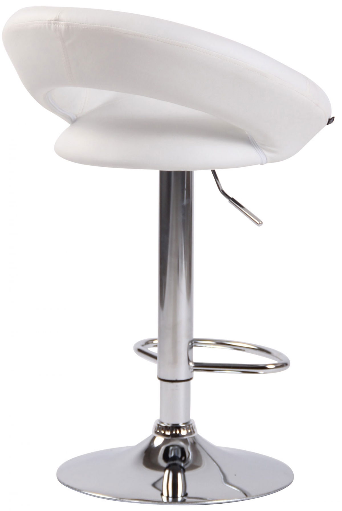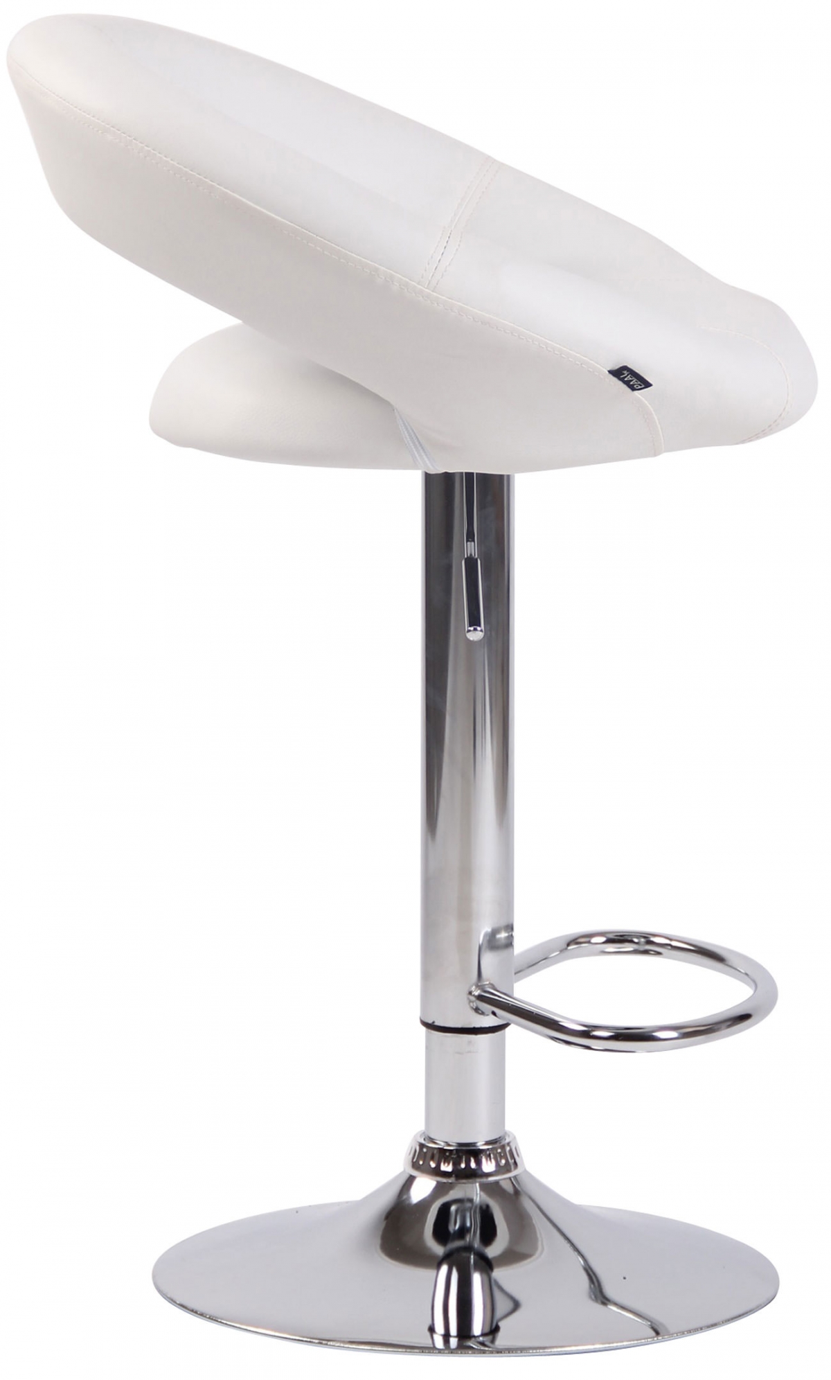 Tato barová židle je pevné a krásné sedadlo pro každodenní použití. Sedák je potažen umělou kůží, která se snadno udržuje, a je zvláště komfortně polstrovaný po celém obvodu opěradla. Stolička je výškově nastavitelná pomocí plynového zvedáku a lze ji otáčet o 360°. Připojenou opěrku nohou lze nastavit synchronně s výškou sedadla, což vám umožní pohodlně sedět několik hodin. Kovový trumpetový podstavec je opatřen chráničem podlahy, který zabraňuje poškrábání a poškození podlahy.