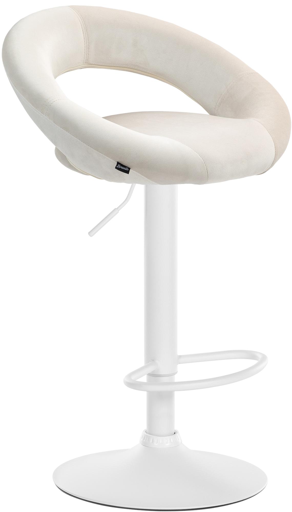 Elegantní barová židle Olinda s luxusním sametovým potahem a plynulým nastavením výšky 60-81 cm. Nabízí pohodlné sezení s nosností až 120 kg, zakřiveným opěradlem a stabilním kovovým rámem s podnožkou.
