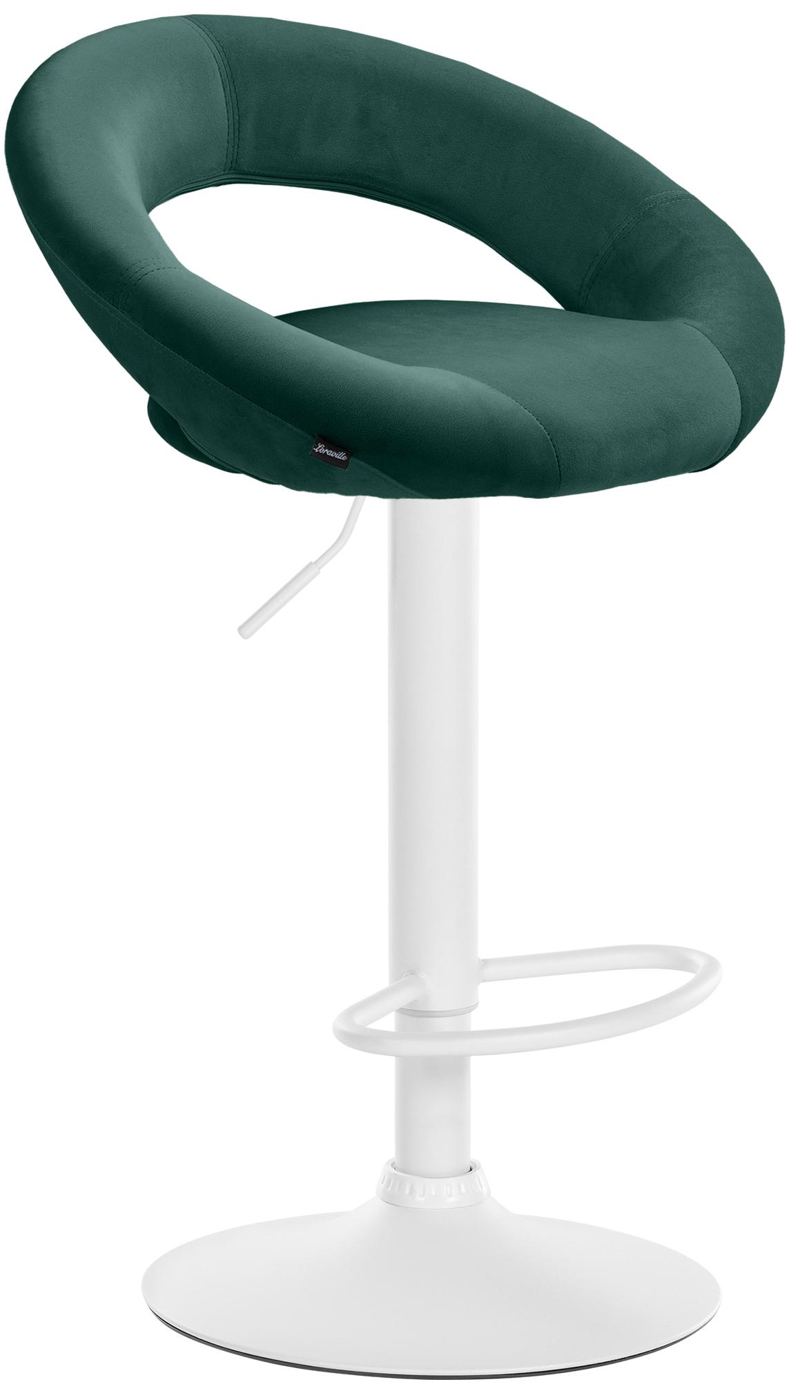 Elegantní barová židle Olinda s luxusním sametovým potahem a plynulým nastavením výšky 60-81 cm. Nabízí pohodlné sezení s nosností až 120 kg, zakřiveným opěradlem a stabilním kovovým rámem s podnožkou.