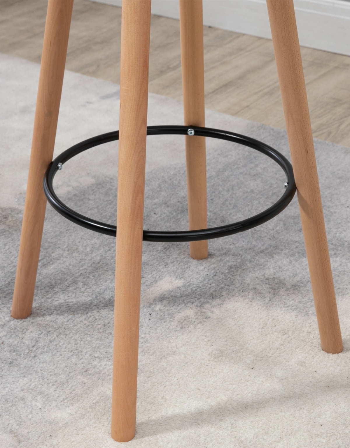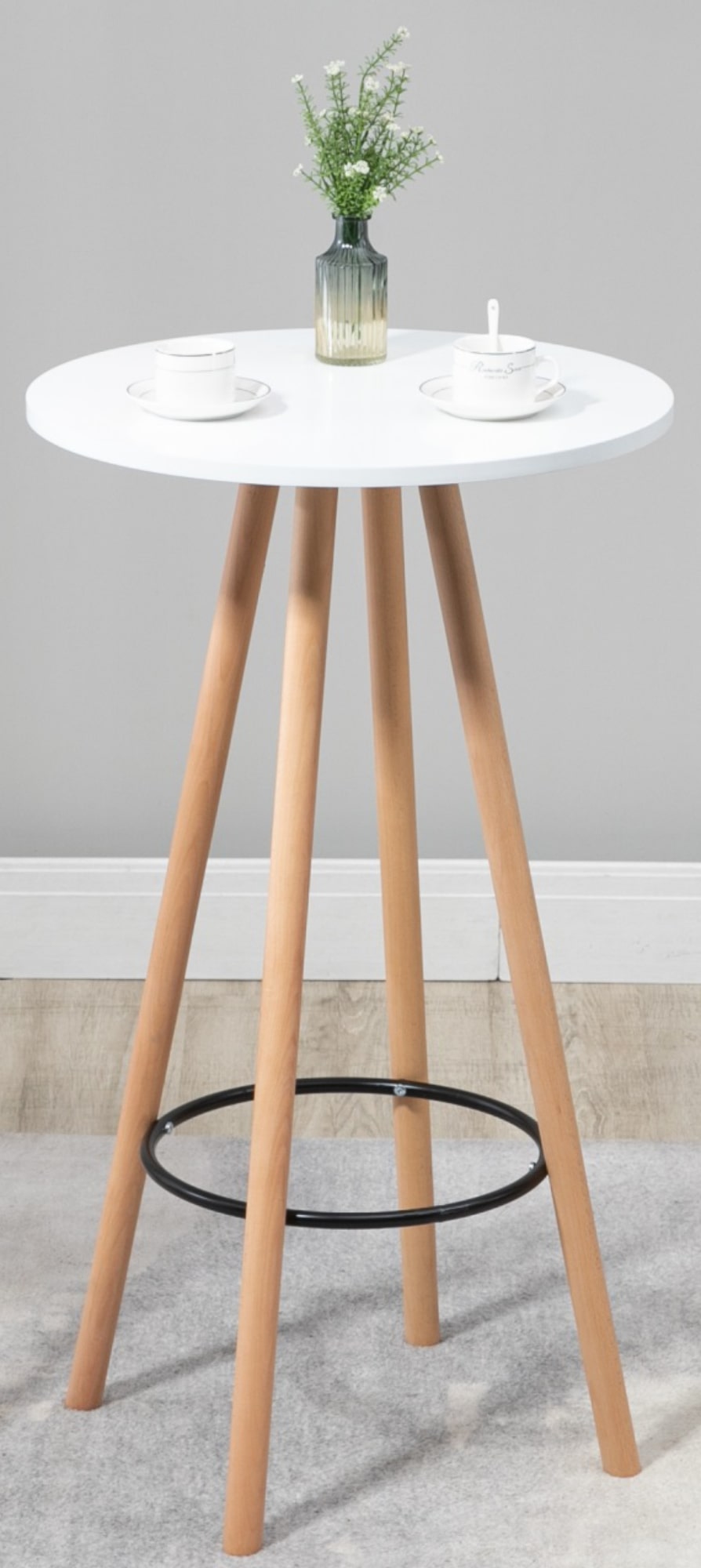 Elegantní barový stůl s jednoduchým skandinávským designem. Deska z MDF a bukové nohy s opěrkou vytváří příjemnou atmosféru. Ideální pro soukromé i firemní prostory, výška 107 cm, šířka 60 cm.