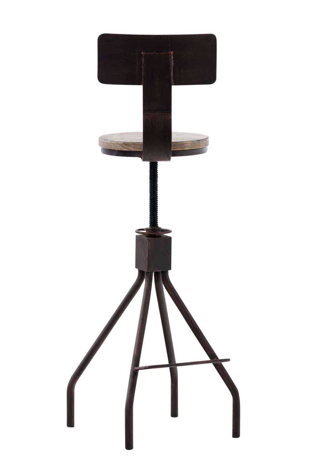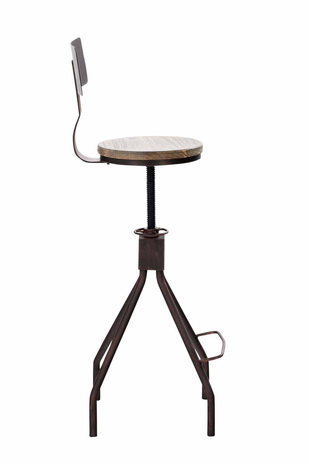 Stylová barová židle Elko v moderním průmyslovém designu s nastavitelnou výškou sedáku a opěrkou nohou. Kombinace masivního dřeva a kovu vytváří jedinečný vzhled a robustní rám zaručuje stabilitu a nosnost až 200 kg.