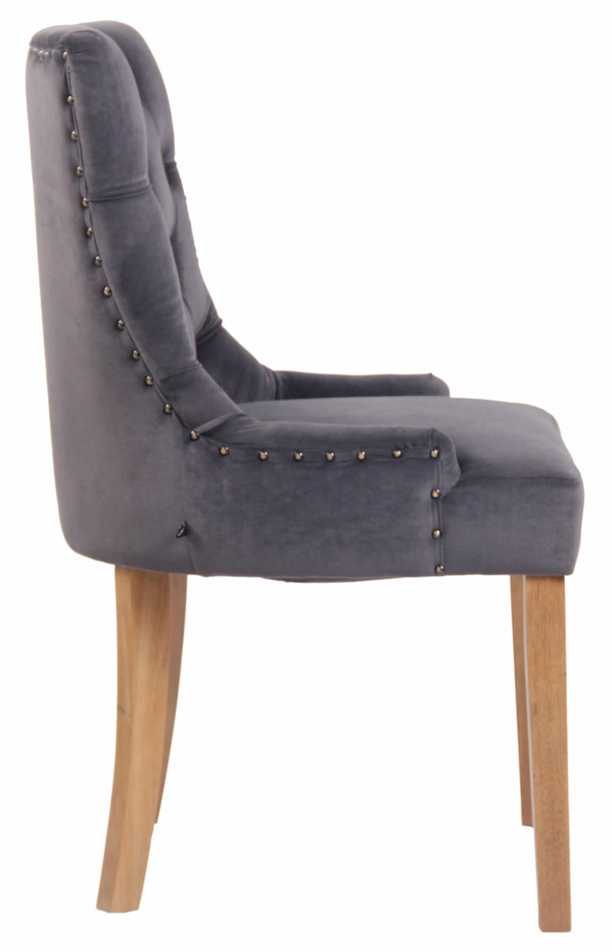 Stylová jídelní židle Aberdeen s polstrovaným sametovým sedátkem a masivním dřevěným rámem. Nabízí pohodlné sezení, dekorativní švy a knoflíky. Rozměry: 55x58x92 cm, nosnost 136 kg.