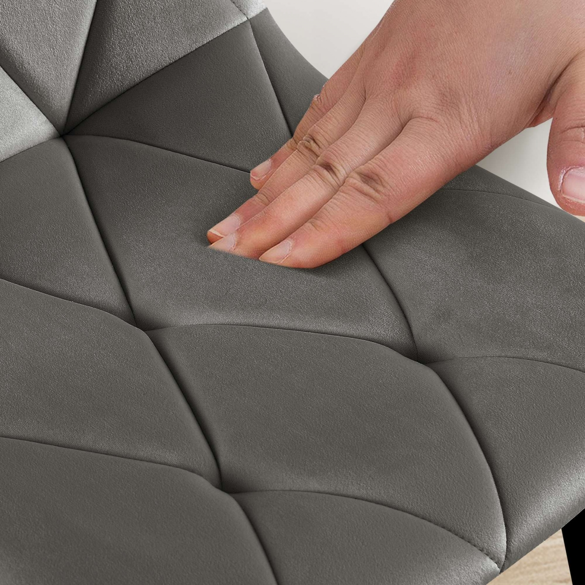Klíčem k pohodlnému sezení je příjemné polstrování sedáku a opěradla. Skořepina sedáku i opěradlo jsou kompletně pokryty sametm potahem, který se snadno udržuje. Elegantní prošívaný vzor upoutá pozornost.