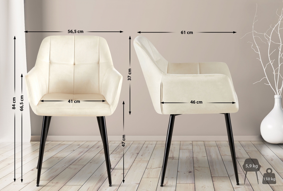 Moderní jídelní židle s vysokým opěradlem a sametovým potahem. Stylový design s prošíváním, 4-nohá černá kovová základna a komfortní sezení s nosností až 150 kg pro dokonalé stolování.