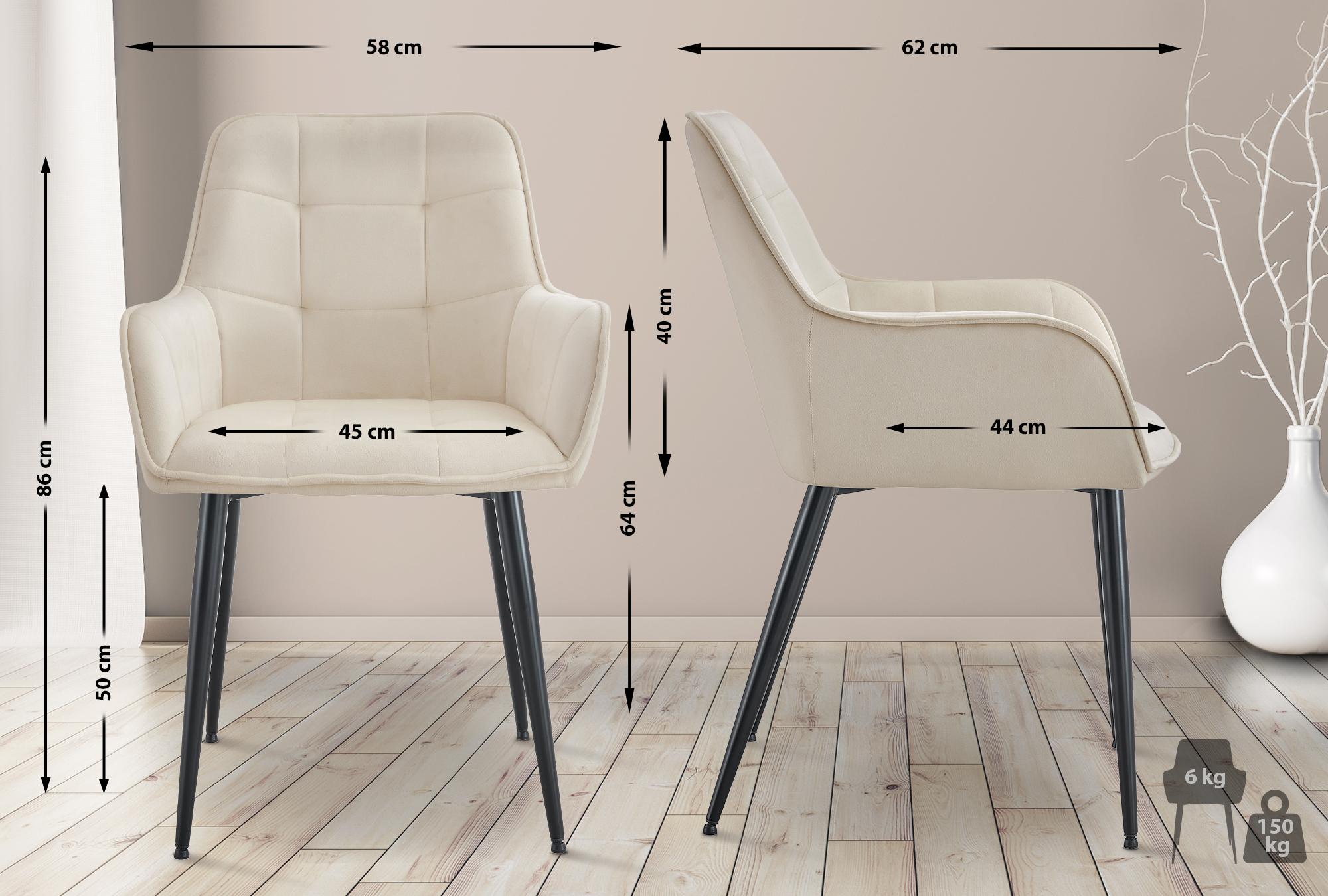 Moderní jídelní židle s pohodlným čalouněným sedátkem a sametovým potahem. Ergonomický tvar a nosnost 150 kg ji předurčují pro delší sezení. Ideální do jídelny, ložnice nebo jako čtecí židle, zapadne do různých interiérů.