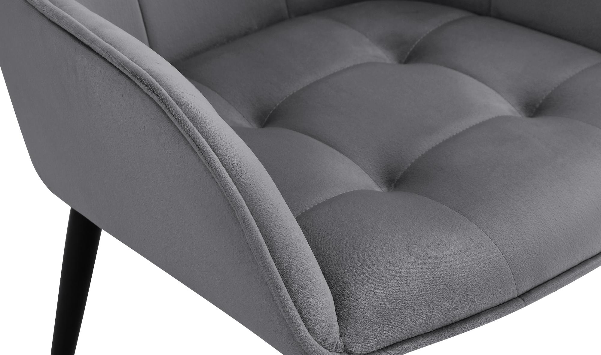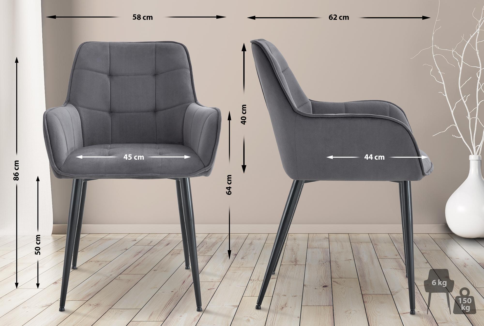 Moderní jídelní židle s pohodlným čalouněným sedátkem a sametovým potahem. Ergonomický tvar a nosnost 150 kg ji předurčují pro delší sezení. Ideální do jídelny, ložnice nebo jako čtecí židle, zapadne do různých interiérů.
