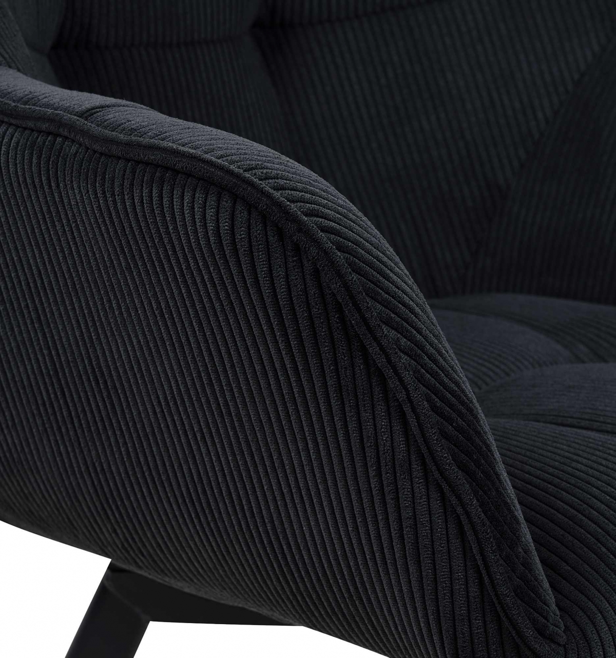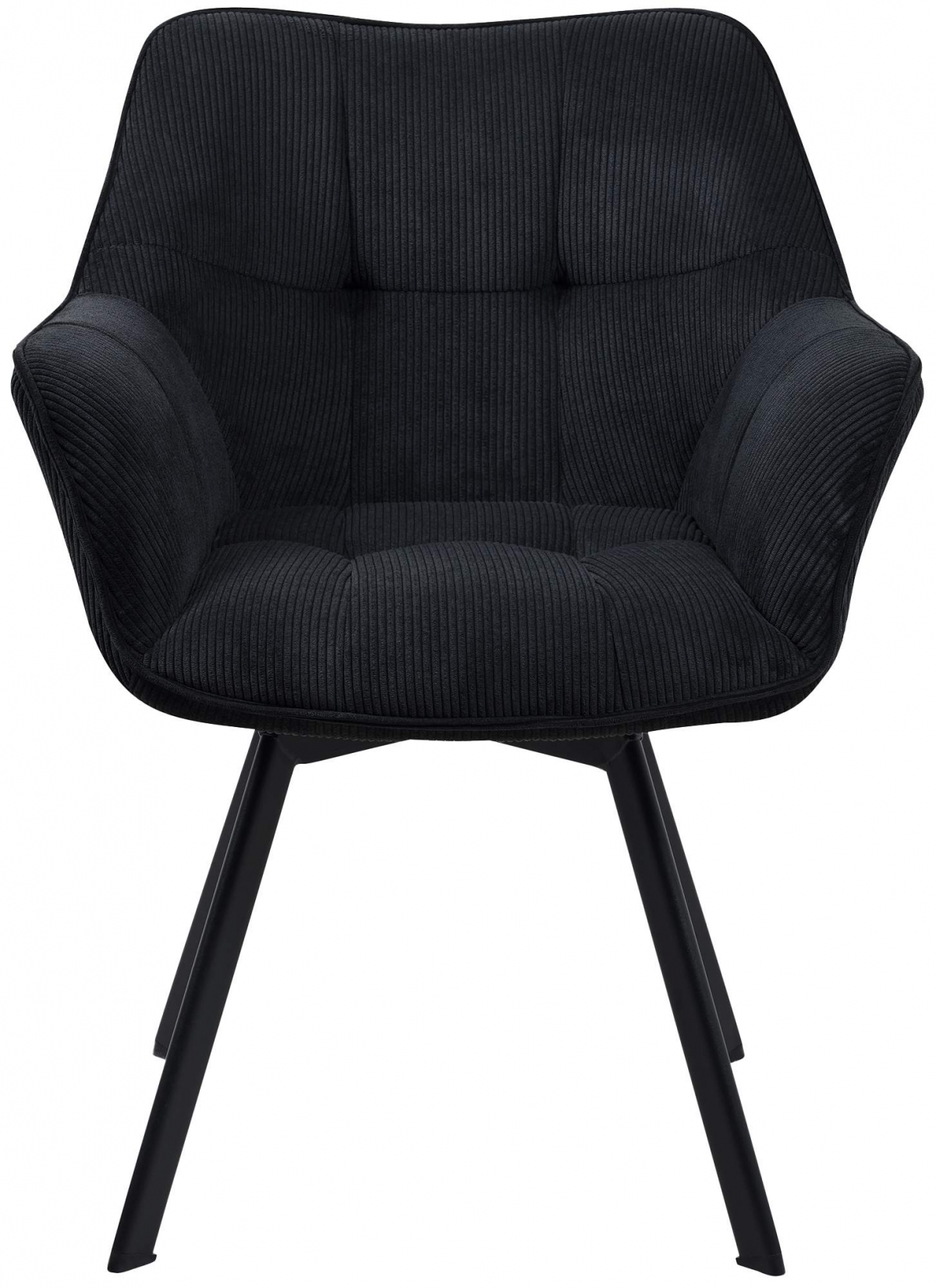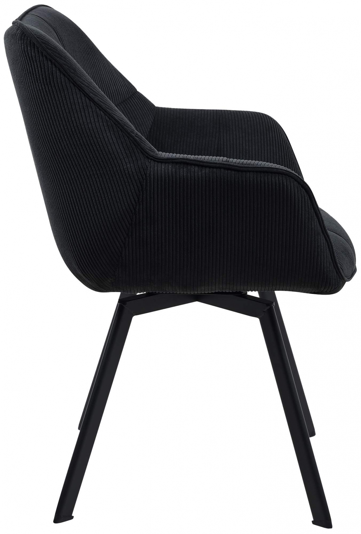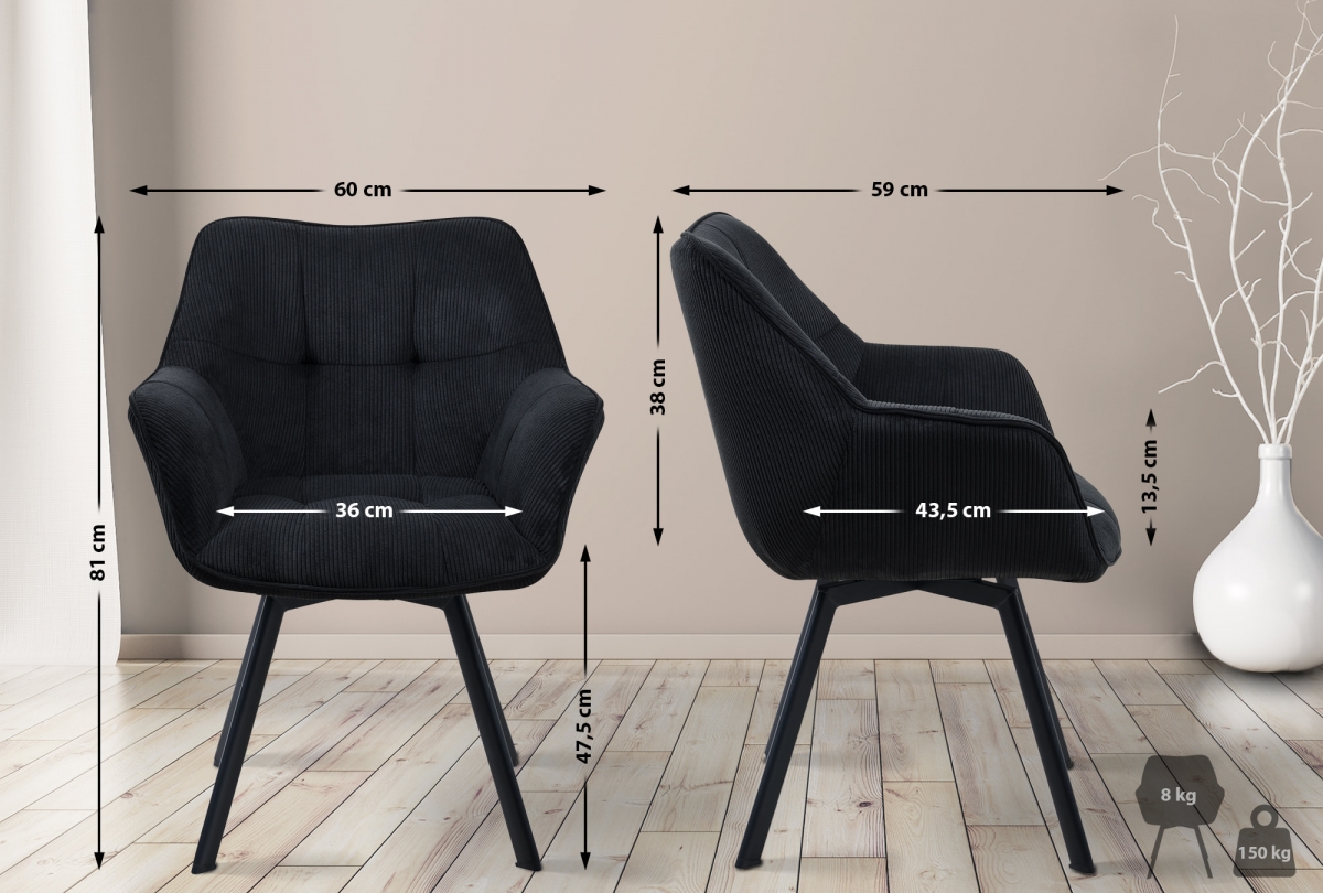 Jídelní židle Jordi Cord spojuje moderní design s vysokým komfortem. Nabízí otočné sedátko s manšestrovým potahem, polstrované opěrky a kovový rám. Ideální pro dlouhé posezení v jídelně či pracovně.