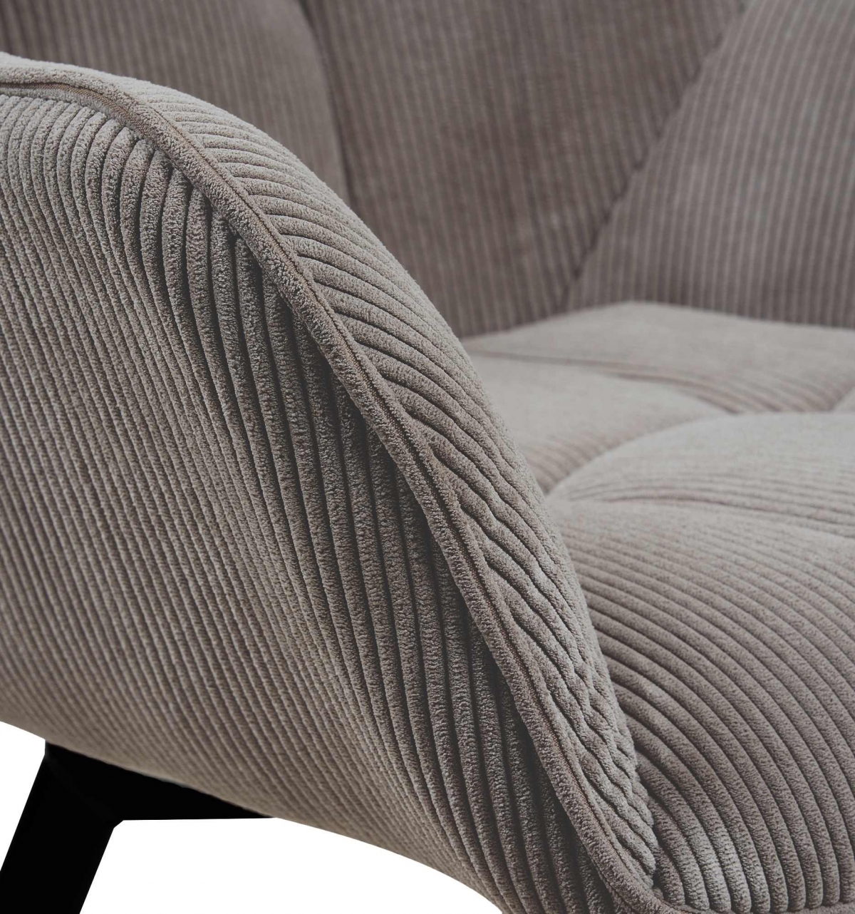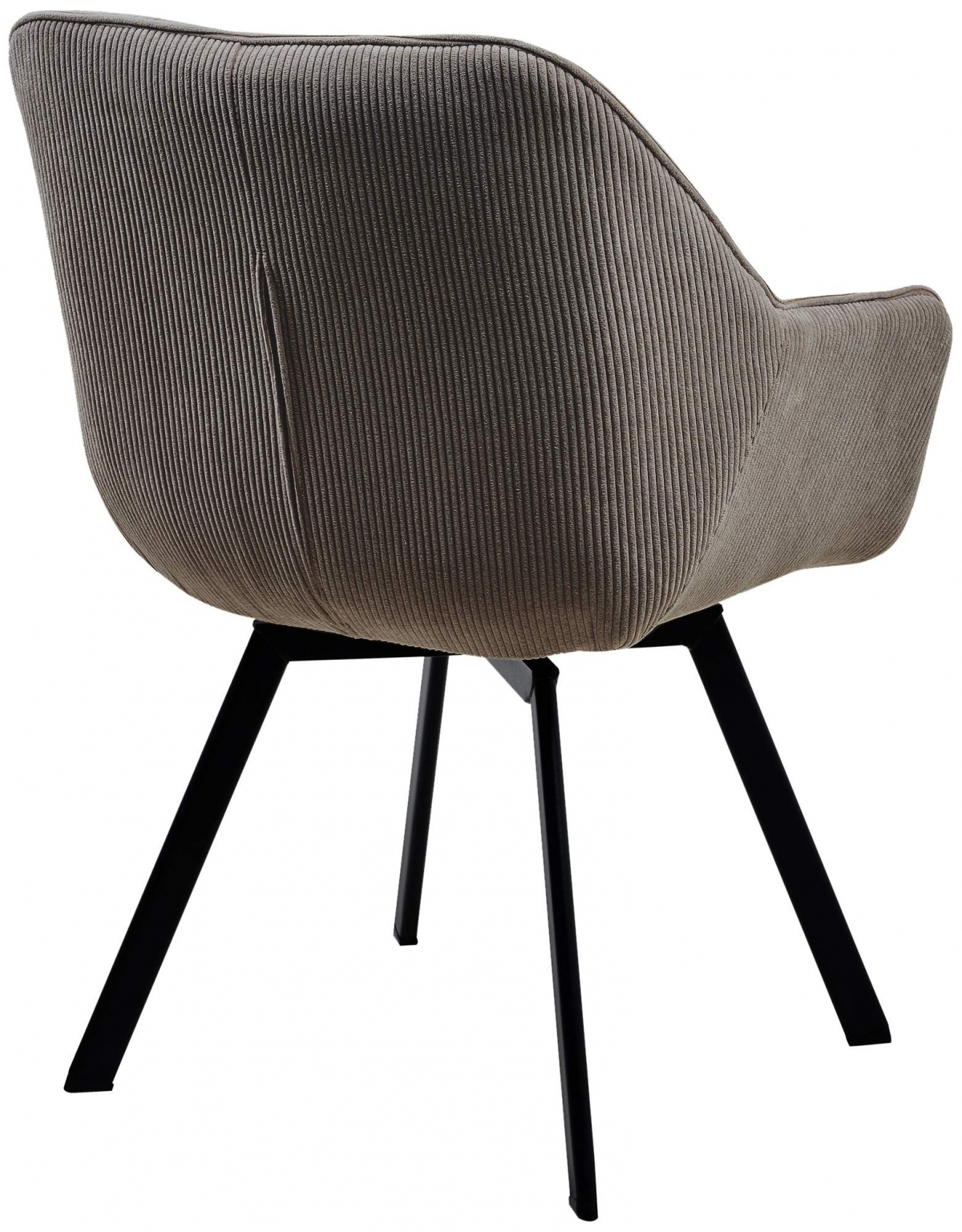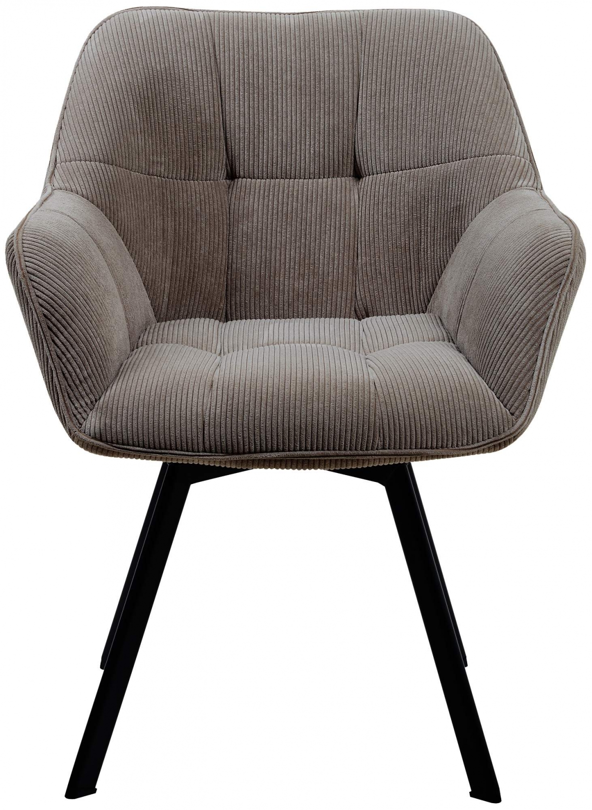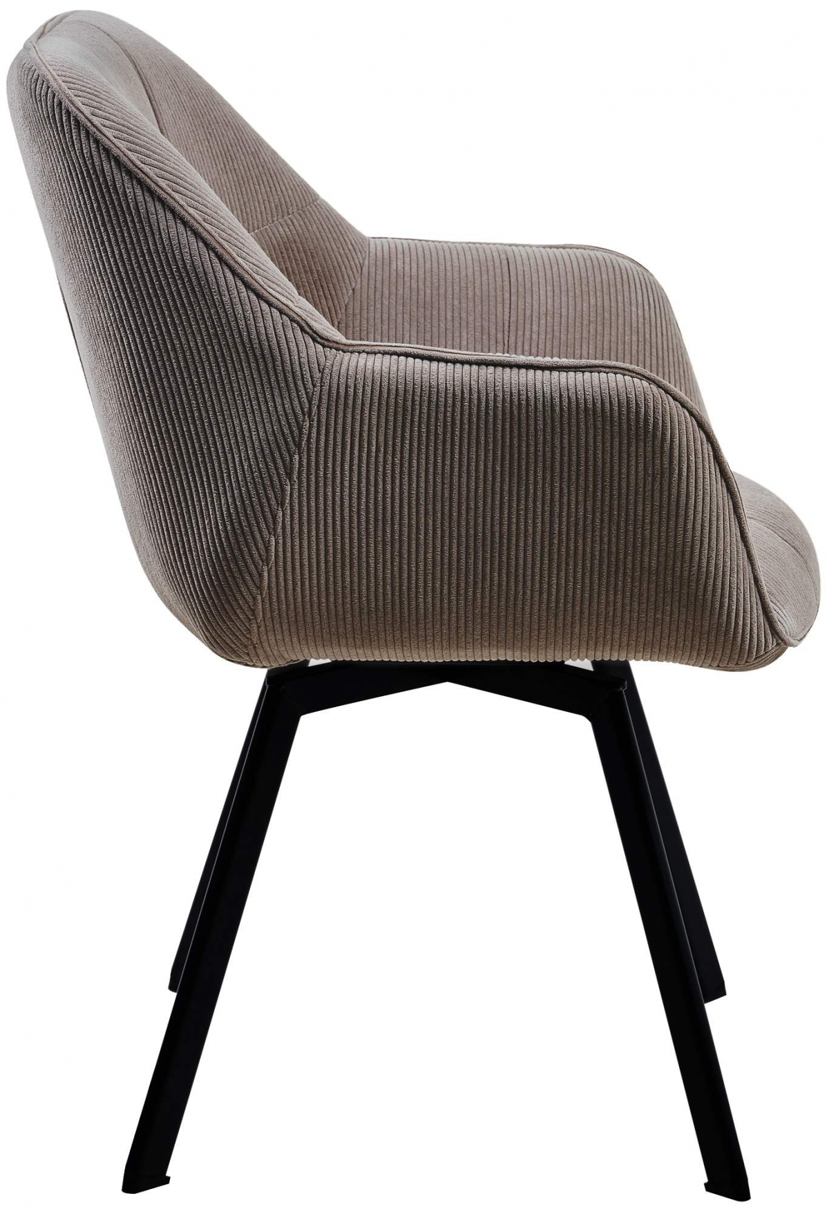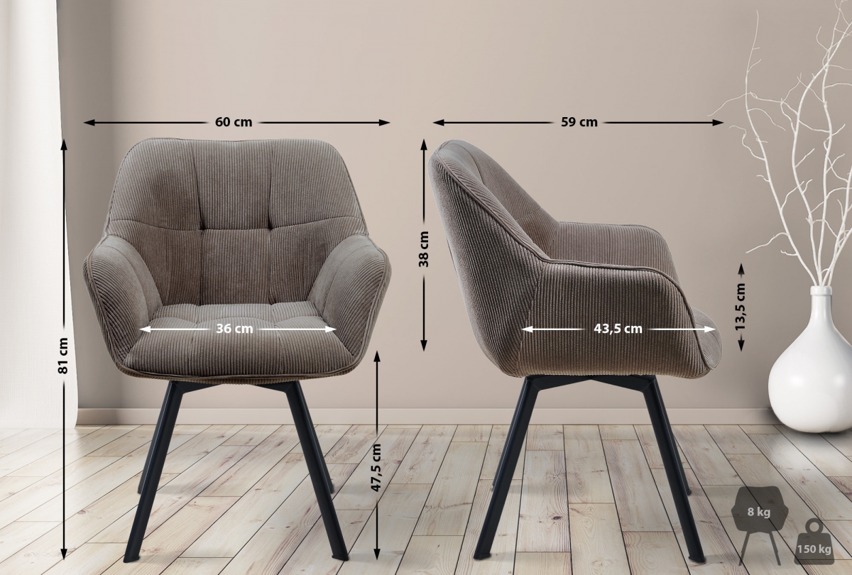 Jídelní židle Jordi Cord spojuje moderní design s vysokým komfortem. Nabízí otočné sedátko s manšestrovým potahem, polstrované opěrky a kovový rám. Ideální pro dlouhé posezení v jídelně či pracovně.