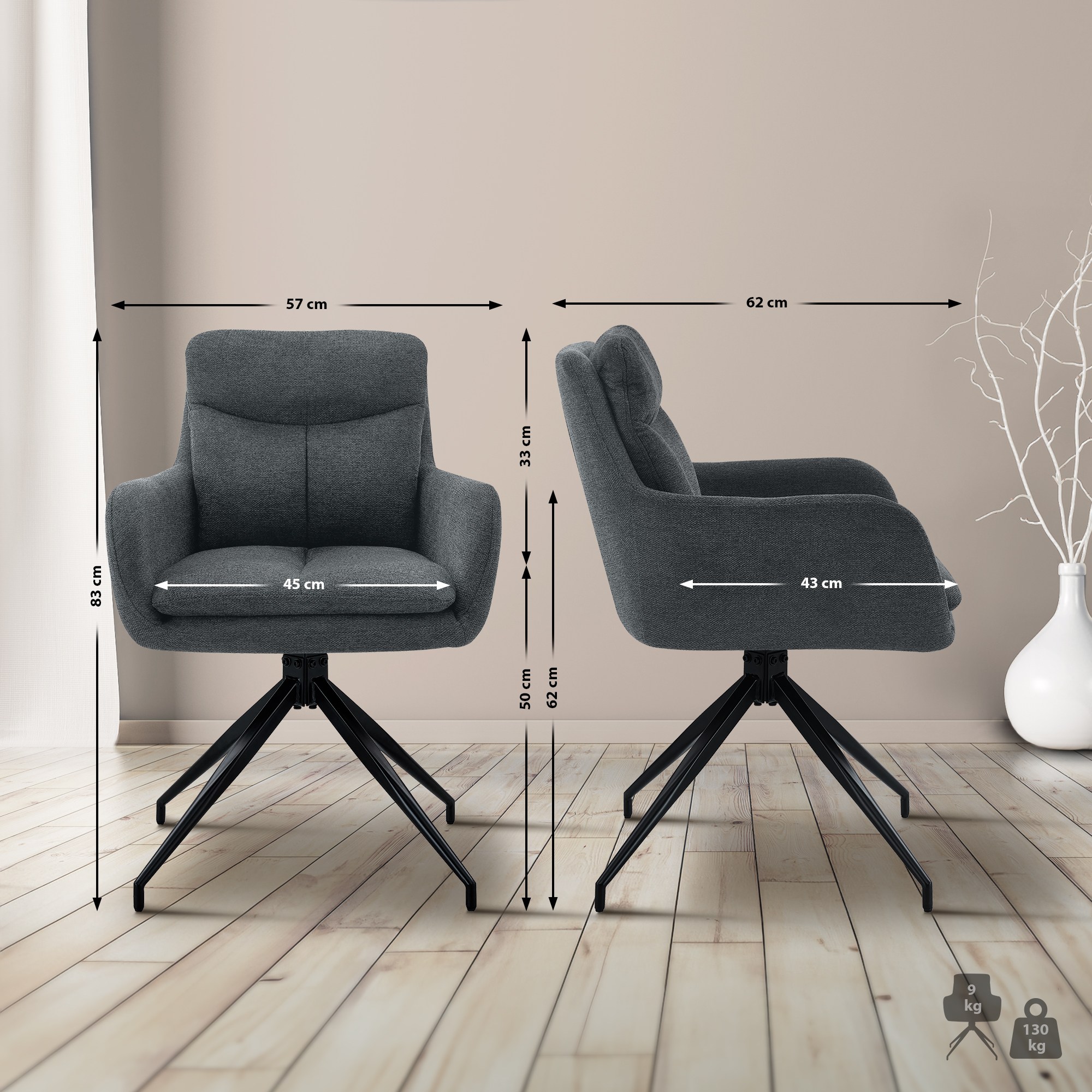 Otočná jídelní židle Somers Fabric v sobě spojuje moderní design s vysokým komfortem sezení – ideální do kuchyně, jídelny, domácí kanceláře nebo obývacího pokoje.