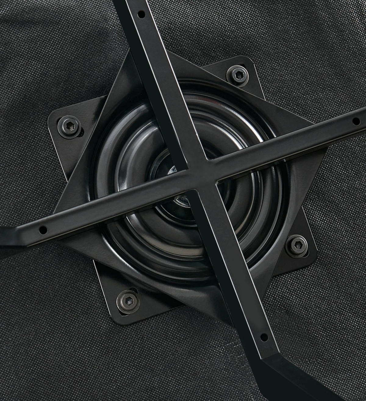 Čtyřnohý kovový rám také slibuje stabilitu a bezpečný stojan Otočnou židli lze bezpečně zatížit až 120 kilogramy. Podlahové chrániče pod nohama židle zabraňují poškození citlivých podlah.