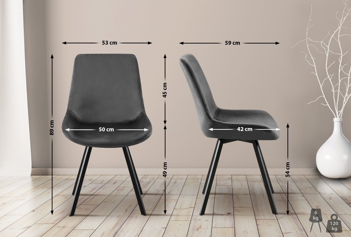 Sametová jídelní židle Lewes nabízí stylové a pohodlné sezení do kuchyně, jídelny či obývacího pokoje. Velkoryse čalouněný sedák a opěrka zaručují komfort i při delším sezení, zatímco stabilní kovový rám unese až 120 kg.
