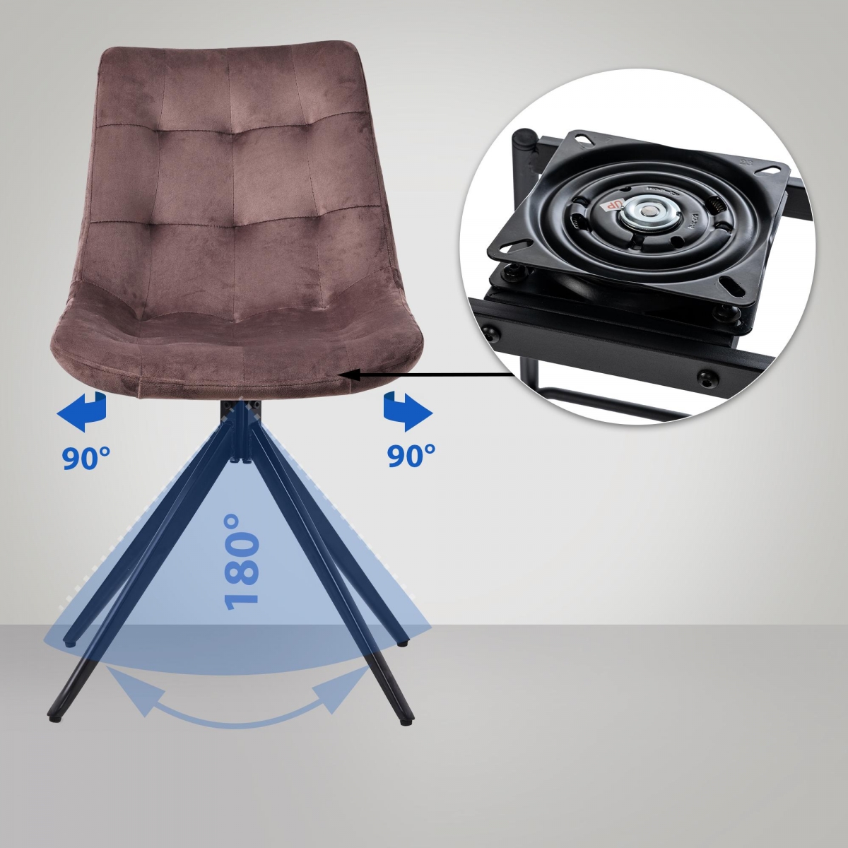 Jídelní židle Merna spojuje pohodlí s moderním designem. Čalouněná, otočná židle s nosností 120 kg je vhodná do kuchyně, jídelny i obývacího pokoje. Nabízí komfortní sezení díky polstrování a sametovému nebo látkovému potahu.