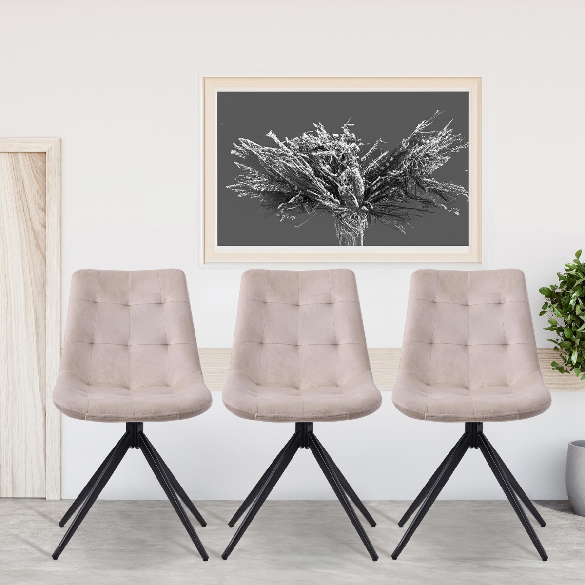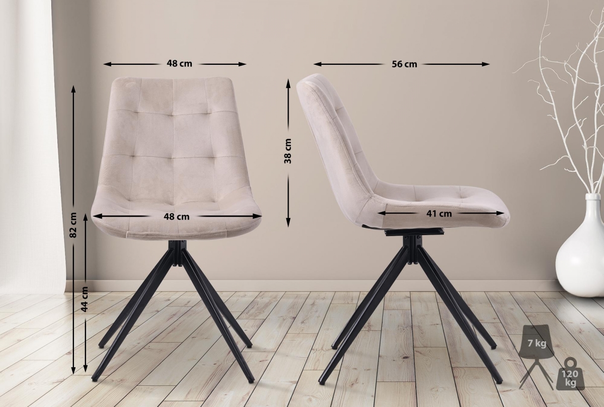 Jídelní židle Merna spojuje pohodlí s moderním designem. Čalouněná, otočná židle s nosností 120 kg je vhodná do kuchyně, jídelny i obývacího pokoje. Nabízí komfortní sezení díky polstrování a sametovému nebo látkovému potahu.