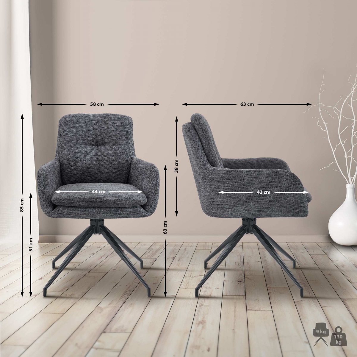 Ergonomický design s pohodlnou zádovou a loketní opěrkou podporuje zdravé držení těla a zajišťuje optimální podporu. Praktická otočná funkce s kovovým otočným talířem umožňuje flexibilní otáčení a nabízí další pohodlí při různých aktivitách.