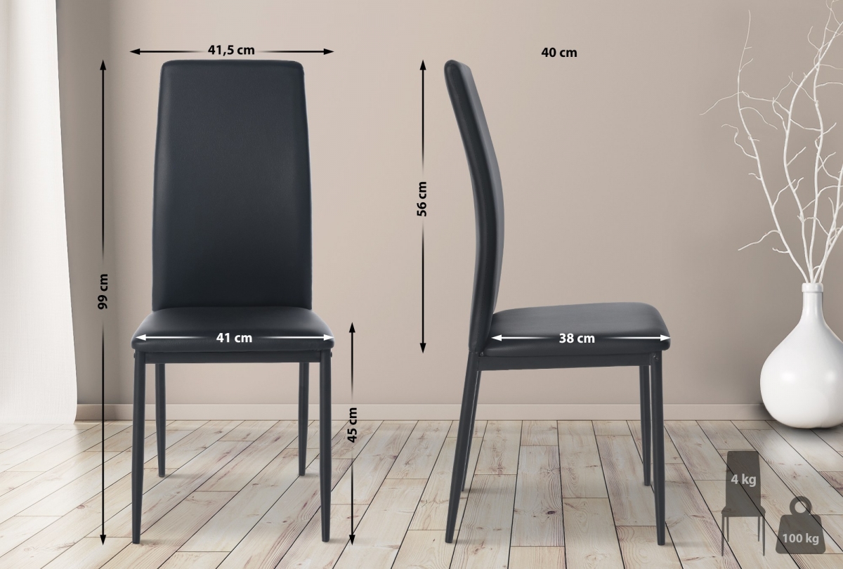 Jídelní židle Savino nabízí vysoký komfort a moderní design. S čalouněným sedákem a opěradlem z umělé kůže nebo sametu je ideální do jídelny, kuchyně či obývacího pokoje. Kovový rám unese až 100 kg.