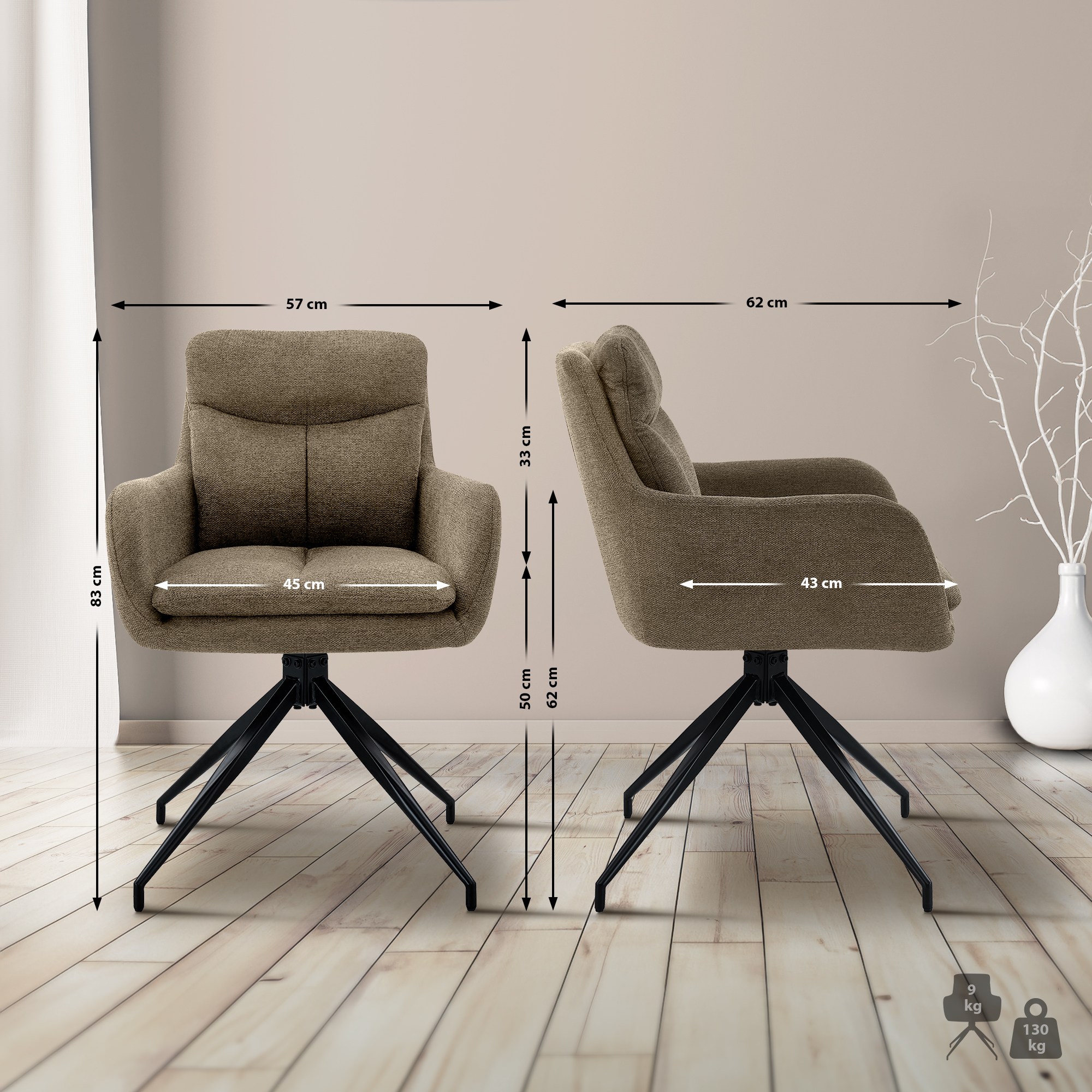 Otočná jídelní židle Somers Fabric v sobě spojuje moderní design s vysokým komfortem sezení – ideální do kuchyně, jídelny, domácí kanceláře nebo obývacího pokoje.