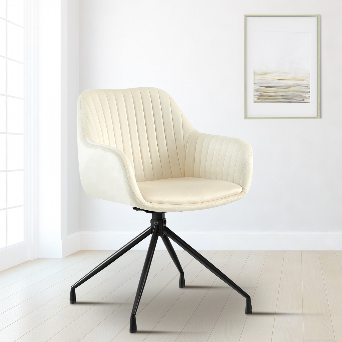 Vynikajícím prvkem je velkorysé polstrování sedáku, opěradla a područek, které zaručuje pohodlný zážitek ze sezení. Skořepina sedáku je potažena jemným sametm potahem, který židli dodává luxusní nádech. Praktická funkce otáčení poskytuje dodatečnou flexibilitu, umožňuje otočení sedadla o 180 stupňů a nabízí tak větší volnost pohybu.