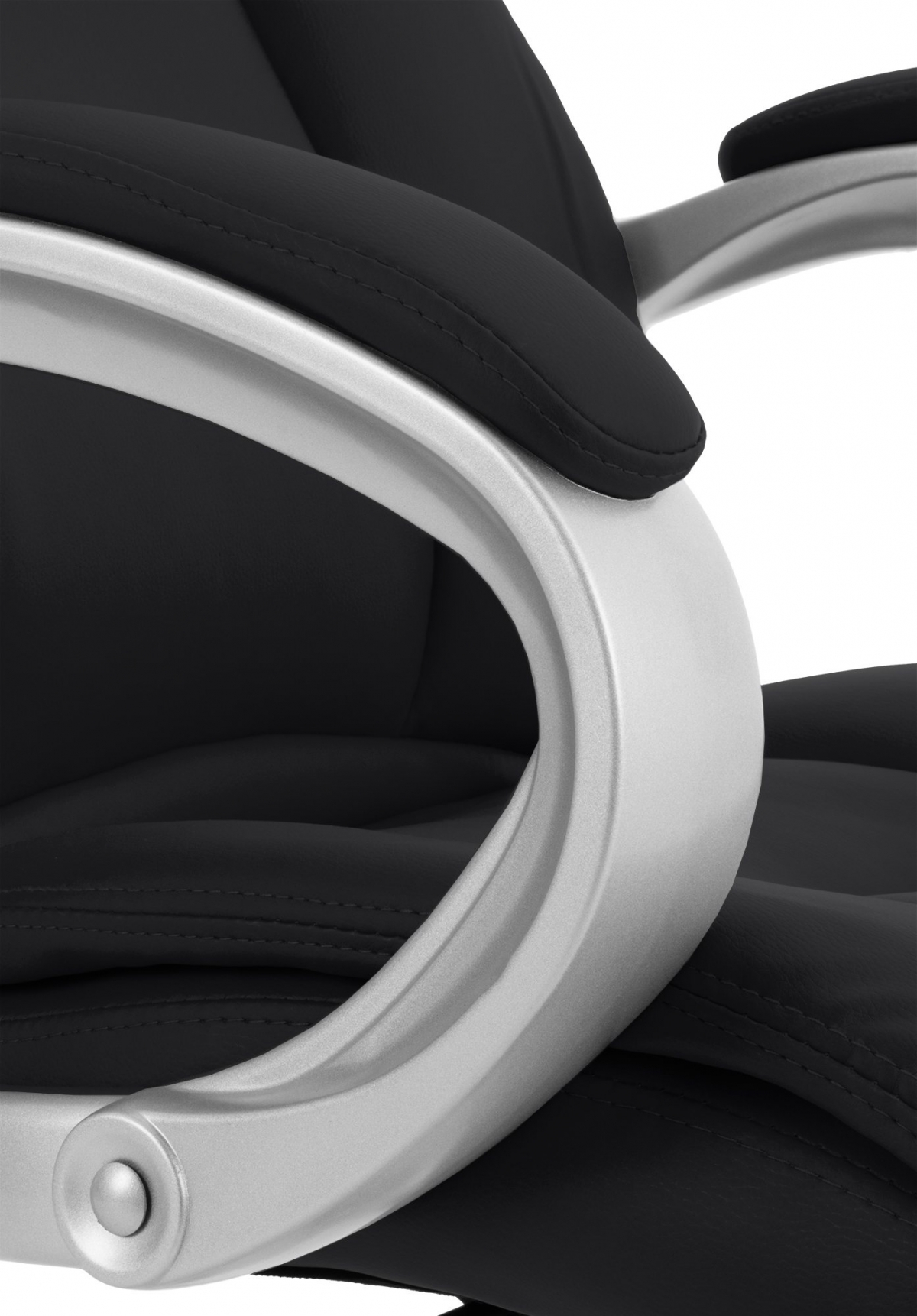Kancelářská židle má kvalitní čalounění a potah vyrobený koženky: Kovový rám je velmi stabilní.