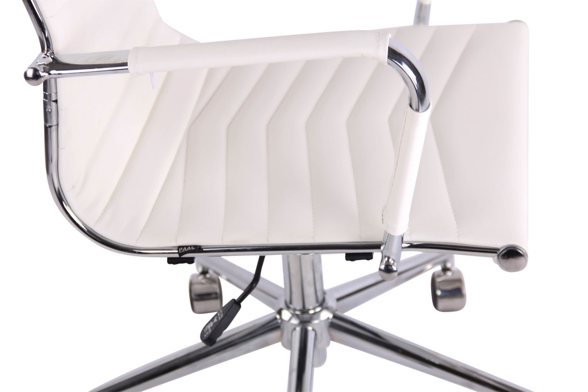 Tato kancelářská židle Batley zaujme nejen svým moderním vzhledem, ale nikdo ji nepřekoná, pokud jde o pohodlí. Otočná židle je k dispozici s potahem z umělé kůže nebo z pravé kůže a je obzvláště snadná na údržbu. Výška sedáku je navíc plynule nastavitelná a zaručuje ergonomické sezení. Stolní židle má také houpací mechanismus, který zajišťuje větší volnost pohybu. Stabilitu zaručuje kovový rám v chromovém vzhledu. Pět koleček s hladkým chodem znamená, že se můžete snadno a volně válet po podlaze – ať už na tvrdých podlahách nebo na kobercích. Elegantní chromovaný rám a stabilní, zakřivené područky dodávají celku něco navíc a završují design.