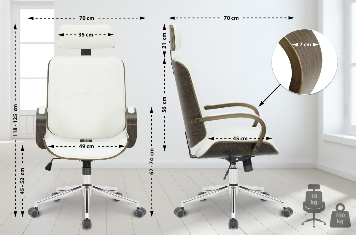 Dřevěný rám u této kancelářské židle upoutá na první pohled a dodá místnosti elegantní design. Díky plynule nastavitelné výšce sezení a ergonomickému sedátku je zaručeno pohodlí. Obsahuje i mechanismus pro naklánění.